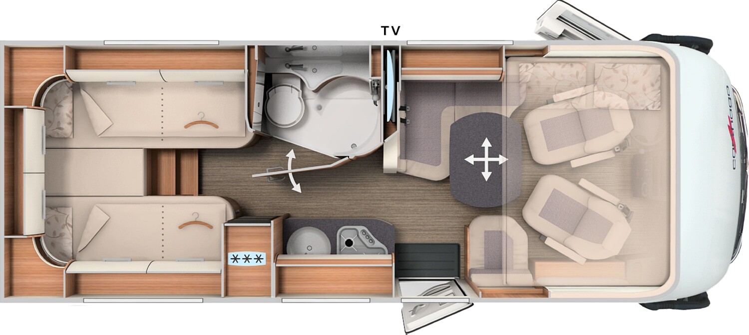 - Basis-Plus-Paket Fiat comfort 4.2 t (Carthago Radzierblenden, Ladebooster, Kraftstofftank 90 Liter, Fahrerhauskomfortsitze mit Neigungs- und Höhenverstellung (vorn / hinten), Radiovorbereitung mit Dachantenne mit DAB+, Lautsprecher (4x), Radio / Moniceiver Pioneer 6,8 inkl. DAB+, Dachluke Midi-Heki mit LED-Spots über L-Wohnsitzgruppe, Große Rollergaragentür auf der Fahrerseite, XL-Aufbautür „premium two 2.0“ (Breite 63 cm) mit Doppelverriegelung, Fenster- und Insektenschutzrollo, SOG-Toilettenentlüftung, Abwasserschlauchset zur komfortablen Entsorgung, USB-Steckdose im Dachstauschrank über Heckbett, Vorbereitung Dachhaubenlüfter elektrisch, Vorbereitung Solaranlage, Vorbereitung Sat-Anlage, Vorbereitung Rückfahrkamera (Einzellinse))