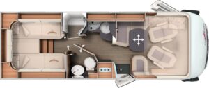 - Basis-Plus-Paket Mercedes comfort 4.2 t (Radzierblenden, Halbautomatische Klimaanlage Tempmatik, Tempomat, Ladebooster, Vorderachse mit erhöhter Traglast, Kraftstofftank 92 Liter, Lederlenkrad mit Option Multifunktionstasten (bei Schaltgetriebe inkl. Leder-Schalthebel), Kombiinstrument mit Farbdisplay, Regensensor, Elektrische Feststellbremse, Fahrerhauskomfortsitze mit Neigungs- und Höhenverstellung (vorn / hinten), Radiovorbereitung mit Dachantenne mit DAB+, Lautsprecher (4x), MBUX 10,2″ Multimedia inkl. Navigation und DAB+, Verkehrszeichenassistent, Dachluke Midi-Heki mit LED-Spots über L-Wohnsitzgruppe, Große Rollergaragentür auf der Fahrerseite, XL-Aufbautür „premium two 2.0“ (Breite 63 cm) mit Doppelverriegelung, Fenster- und Insektenschutzrollo, SOG-Toilettenentlüftung, Abwasserschlauchset zur komfortablen Entsorgung, USB-Steckdose im Dachstauschrank über Heckbett, Vorbereitung Dachhaubenlüfter elektrisch, Vorbereitung Solaranlage, Vorbereitung Sat-Anlage, Vorbereitung Rückfahrkamera (Einzellinse))