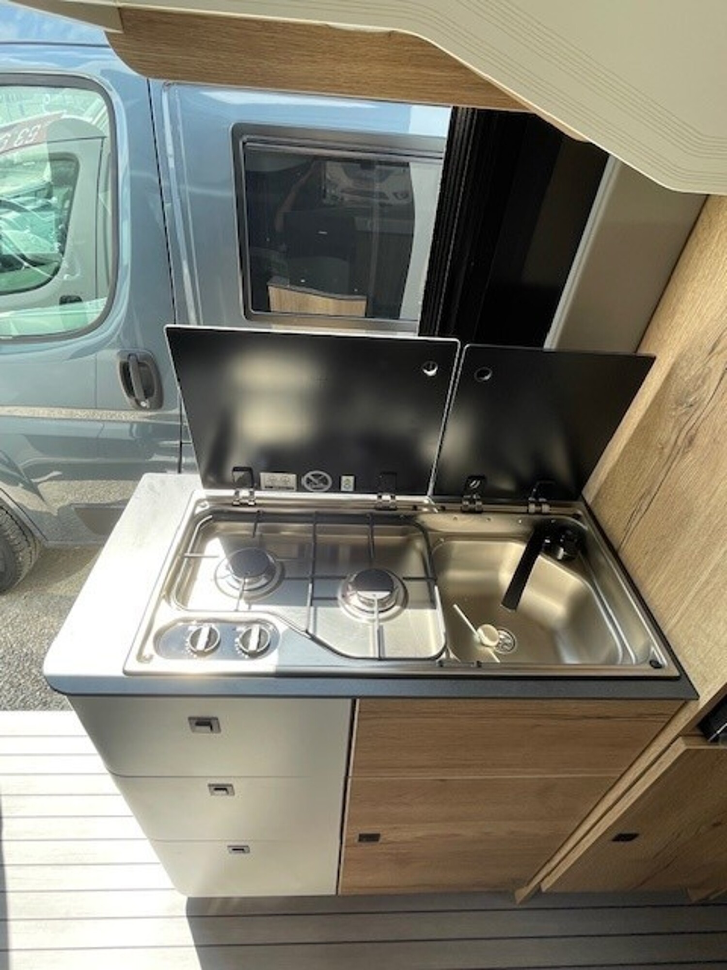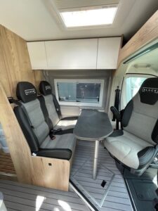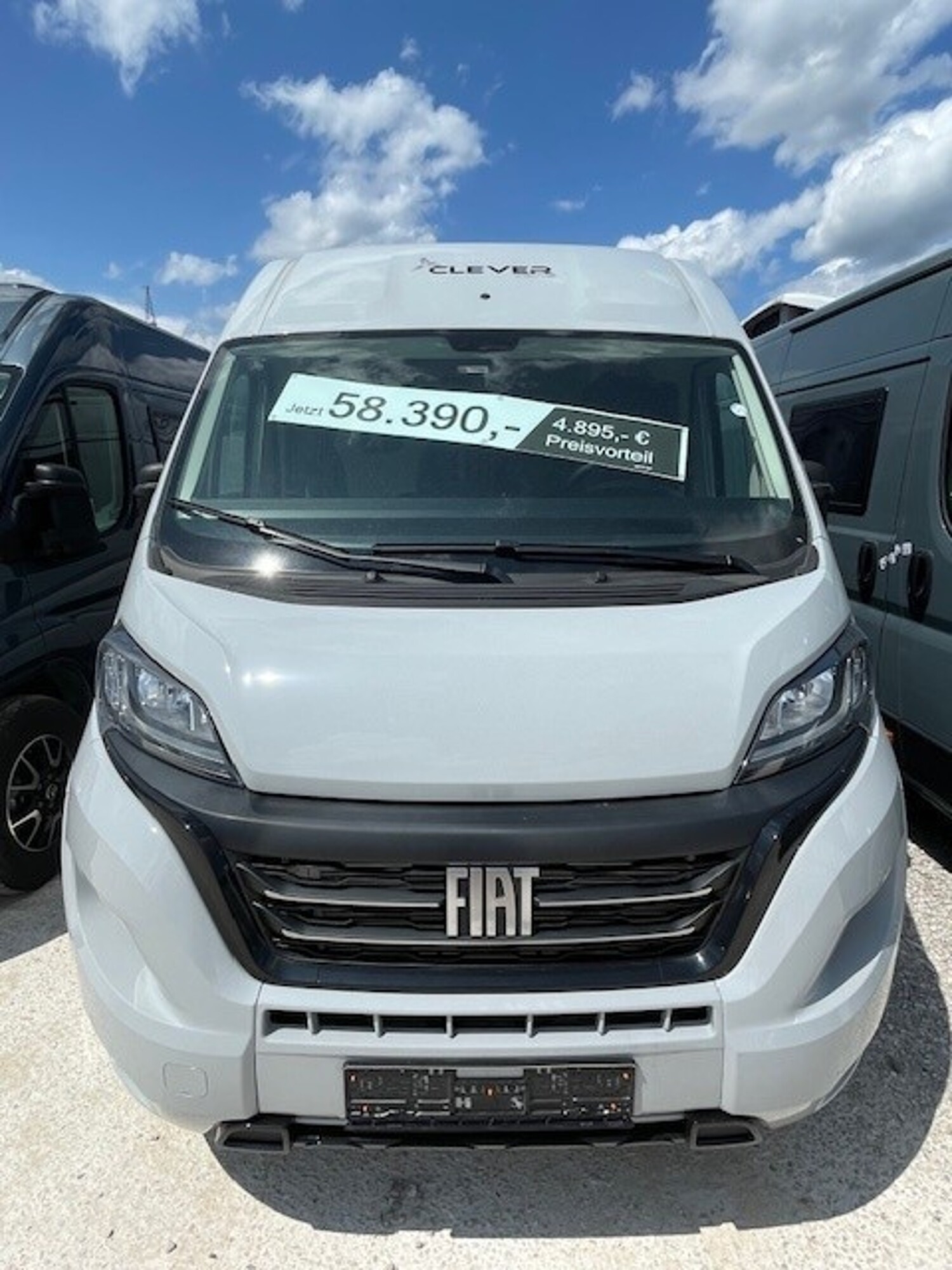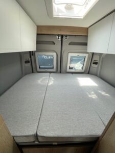 - Celebration Serienausstattun (ABS, ESP, ASR, Fahrer- und Beifahrerairbag, Tempomat, Multifunktions-Lederlenkrad und Lederschaltknauf, Zentralverriegelung, elektrisch verstell- und beheizbare Außenspiegel, LED-Tagfahrlicht, Chromringe im Kombiinstrument, Vorbereitung Rückfahrkamera, 90-Liter Kraftstofftank, Batterietrennschalter, 25-A Ladebooster, 100-Ah Lithiumbatterie, Klimaanlage im Fahrerhaus, drehbare Captain-Chair Sitze, USB-Anschluss im Armaturenbrett, Smartphone-/Tablethalter und Getränkehalter, LED-Außenlichtleiste, elektrische Trittstufe, Möbeldesign Ahorn, Oberschrankklappen in Weiß matt mit silbernem Profil, Softtouchverkleidung im Schlafbereich, hochfeste Tisch- und Arbeitsplatten aus HPL, Lamellenschiebetür im Bad, Dachfenster und Dachhauben vorne und hinten, Kompressorkühlschrank, 2×230-V Steckdosen, 1×USB-Steckdose, 1×12-V Steckdose, Schiebetür mit Fliegenschutztür, Verdunkelungsrollos im Fahrerhaus.)