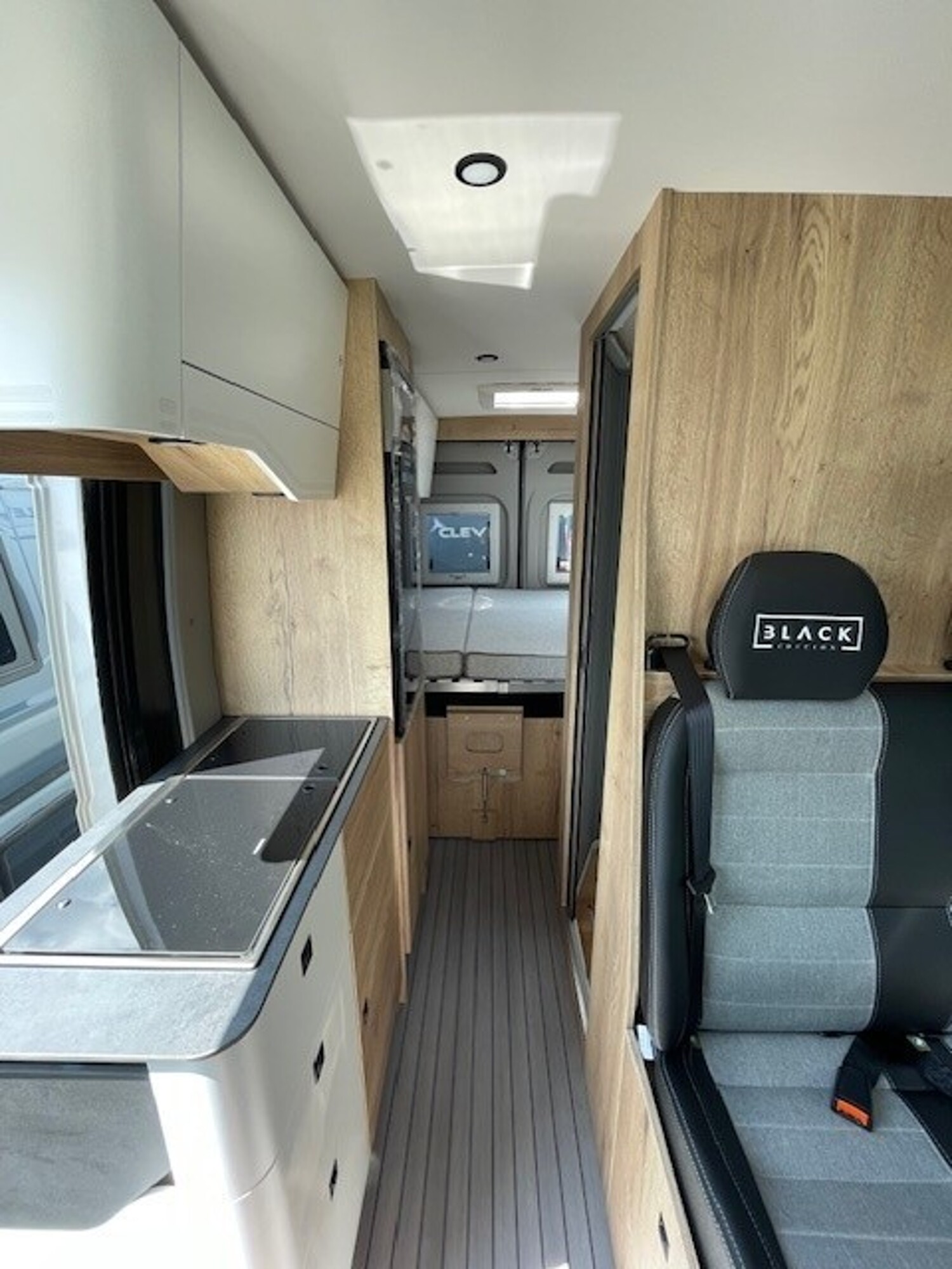 - Black Edition [Isofix Serienbank, Einlegeboden Duschtasse, Ambientebeleuchtung, Holz Eiche Halifax, Design-Paket (Dunkle Arbeitsplatte und Tischplatte), Stoff Teilleder Sitzbezug)