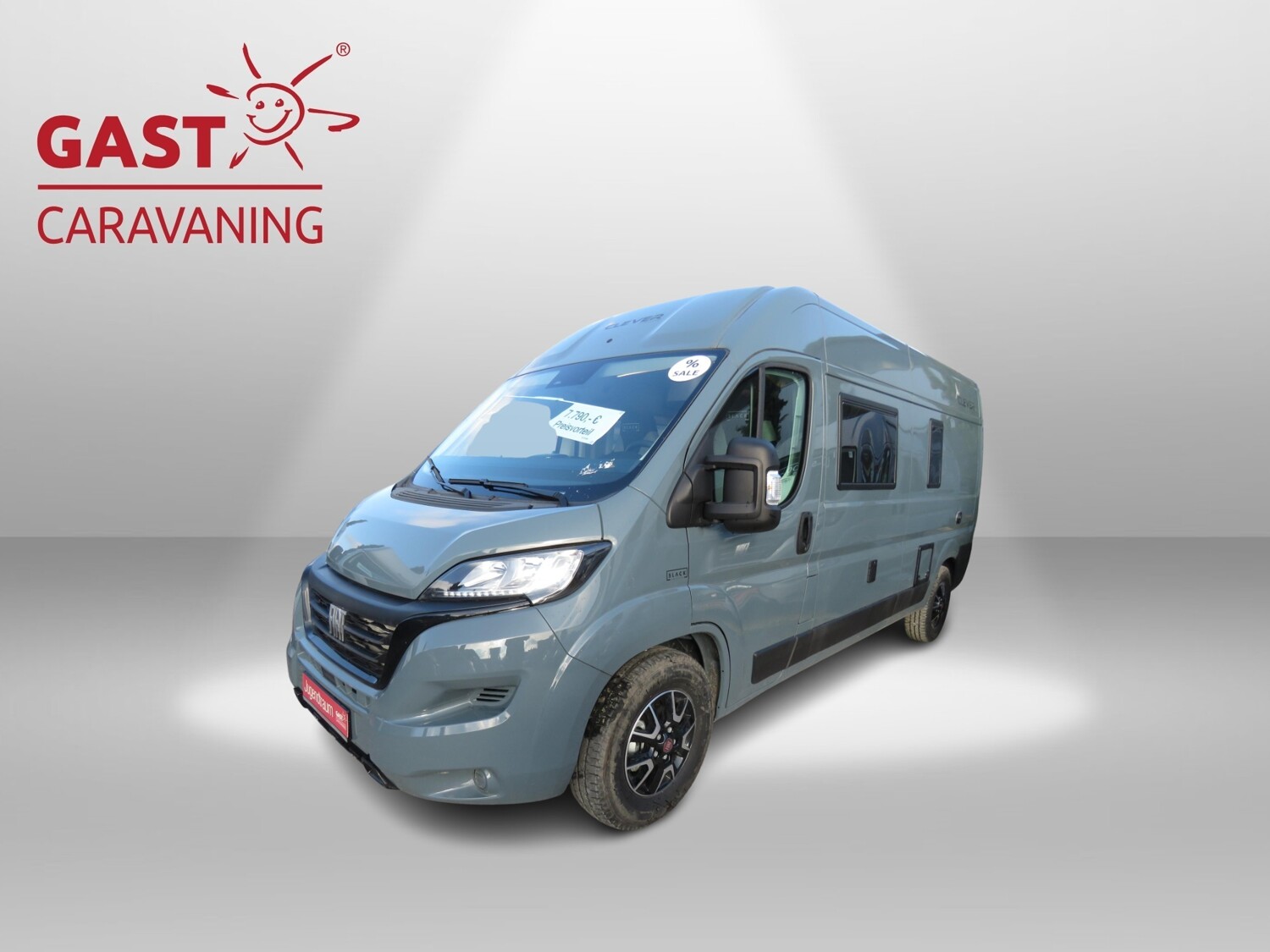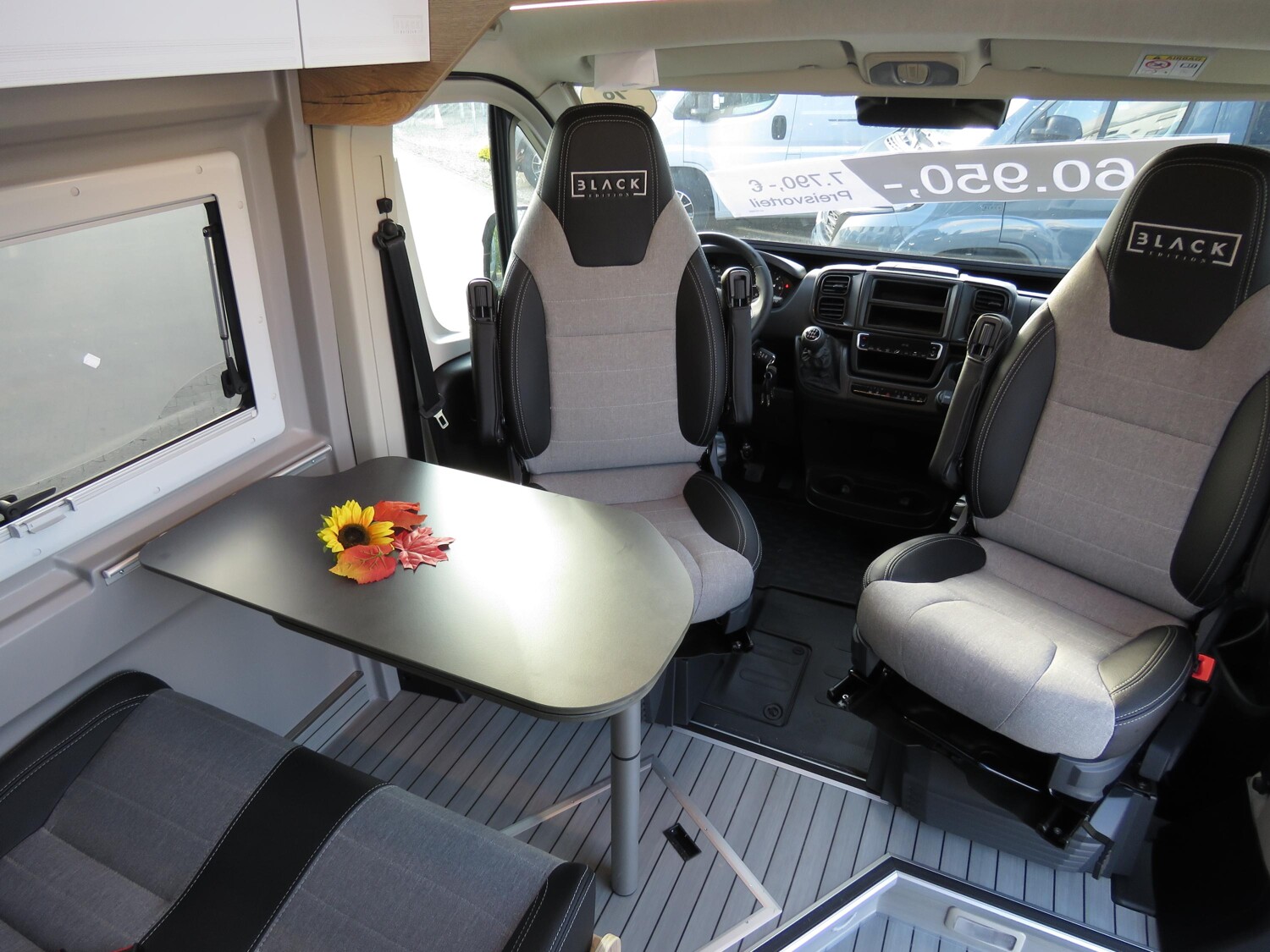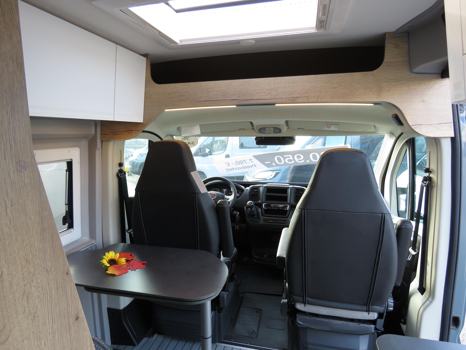 • Celebration-Serienausstattung (ABS, ESP, ASR, Fahrer- und Beifahrerairbag, Tempomat, Multifunktions-Lederlenkrad und Lederschaltknauf, Zentralverriegelung, elektrisch verstell- und beheizbare Außenspiegel, LED-Tagfahrlicht, Chromringe im Kombiinstrument, Vorbereitung Rückfahrkamera, 90-Liter Kraftstofftank, Batterietrennschalter, 25-A Ladebooster, 100-Ah Lithiumbatterie, Klimaanlage im Fahrerhaus, drehbare Captain-Chair Sitze, USB-Anschluss im Armaturenbrett, Smartphone-/Tablethalter und Getränkehalter, LED-Außenlichtleiste, elektrische Trittstufe, Möbeldesign Ahorn, Oberschrankklappen in Weiß matt mit silbernem Profil, Softtouchverkleidung im Schlafbereich, hochfeste Tisch- und Arbeitsplatten aus HPL, Lamellenschiebetür im Bad, Dachfenster und Dachhauben vorne und hinten, Kompressorkühlschrank, 2×230-V Steckdosen, 1×USB-Steckdose, 1×12-V Steckdose, Schiebetür mit Fliegenschutztür, Verdunkelungsrollos im Fahrerhaus.)