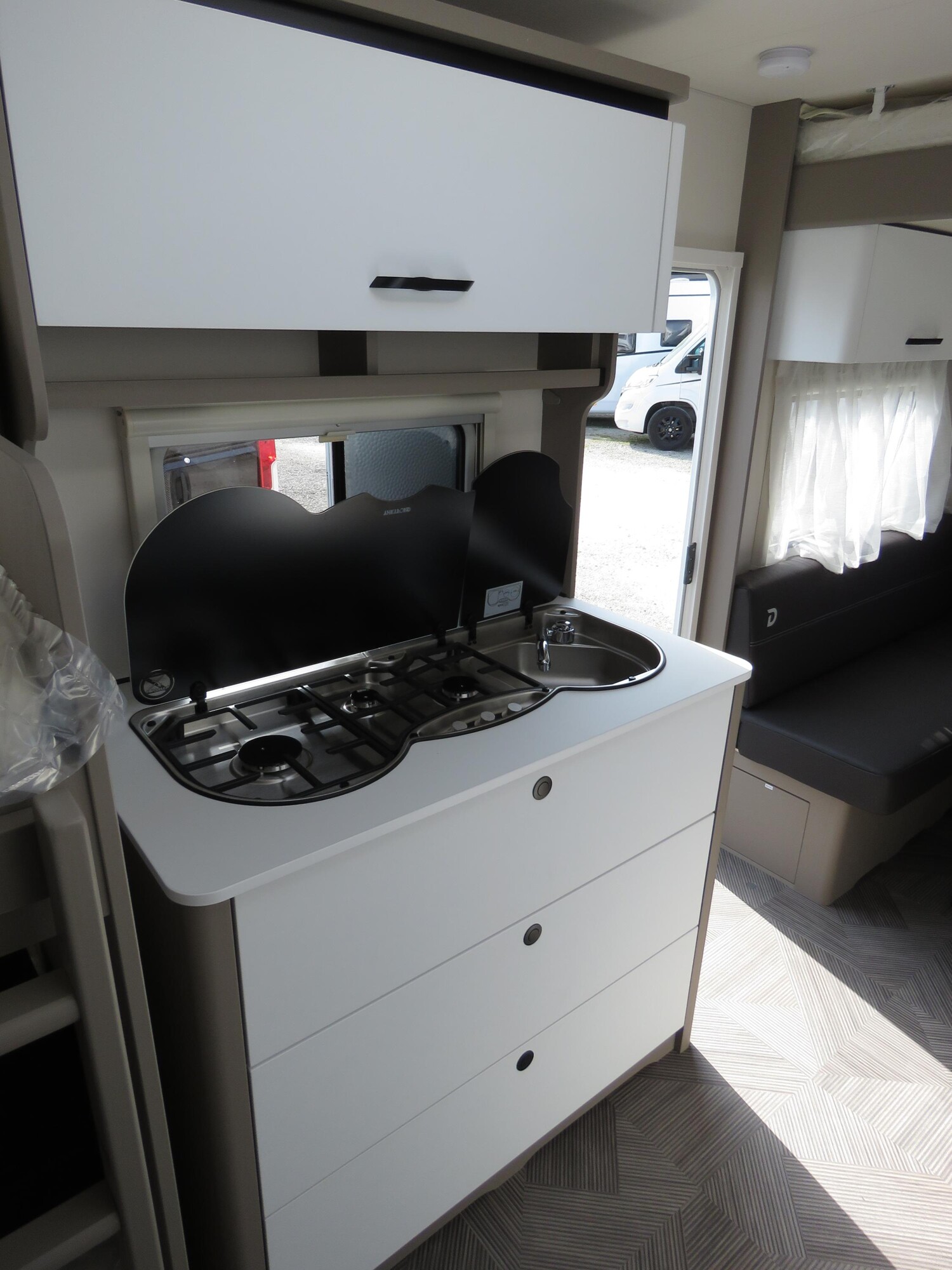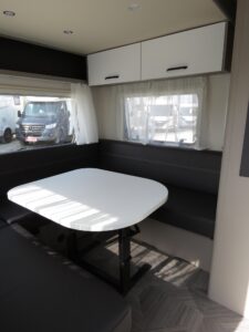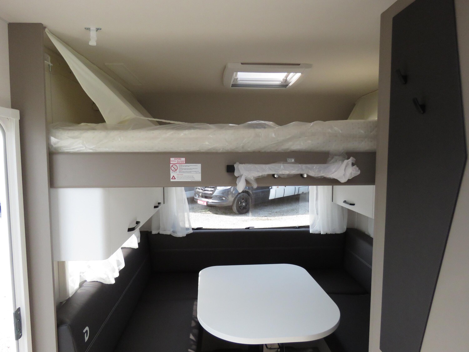 • Active-Paket up 525 KR (Bereifung auf Alufelge 195 R14 C LI106, 1700 kg und 1800 kg, Auflastung 1.800 kg (inkl. Stahlrad 195 R14 C LI106), Stabilformstützen inkl. großflächige Abstützfüße, Dachhaube Heki II inkl. Baldachin beleuchtet, Fliegengittertüre, Küchenfenster, schiebbar (Änderung der Fensterform), 7-Zonen-Matratze aus klimaregulierendem Material, Warmluftanlage, Indirekte Beleuchtung, USB Steckdose für Spot-Schiene, Einbau Klimaanlage vorbereitet, Warmwasserversorgung)