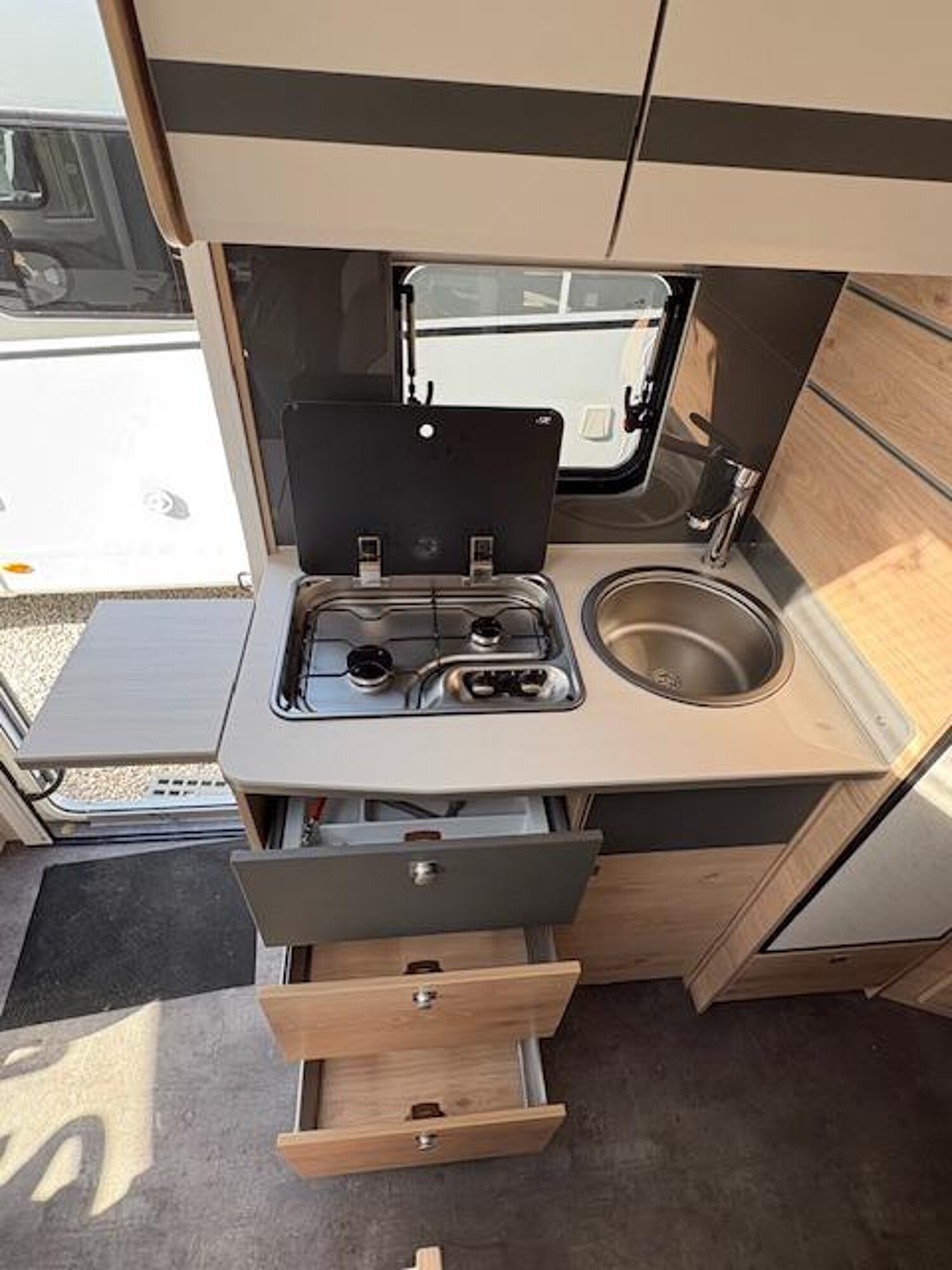 - Active-Paket I 4 (Wohnraumtür mit Fenster inkl. Verdunkelung und Zentralverriegelung (inkl. Fahrerhaustür), Panorama-Dachhaube 75×105 cm im Wohnraum, Light Moments: Indirekte Ambientebeleuchtung über den Dachstauschränken, Light Moments: Indirekte Wandflächen-Ambientebeleuchtung, Bord-Control-Panel Luxus, Vorbereitung für Radiosystem inkl. Soundpaket im Fahrerhaus, Radioantenne DAB+ auf dem Dach montiert, Active Außendesign (Lackierung I-Front teilweise schwarz, erweiterte Beklebung GT, Skidplate „rot“), Hoher charakteristischer Dethleffs Exklusiv Heckleuchtenträger mit 3. Bremsleuchte, Doppelverglaste Rahmenfenster mit Verdunklung & Mückenschutz, Küchenrückwand „Grau Metallic“, Steckdosen und Schalter in Bicolor, Duschrost, Rückfahrkamera (Einfachkamera), Dethleffs Naviceiver inkl. DAB+, Truck Navigation, Wireless Apple CarPlay und Android Auto, Abwassertank isoliert, Digitales Bedienelement für Warmluftheizung, Vorbereitung Solar, Vorbereitung Dach-Klimaanlage, Vorbereitung zweite Rückfahrkamera, Vorbereitung SAT-Anlage, Wohnwelt Jupiter, Light Moments: Fensterverkleidung im Wohnraum beleuchtet, Bettumbau Einzelbetten zu Doppelbett, Cassettenmarkise Omnistor 4,5 m (manuell))