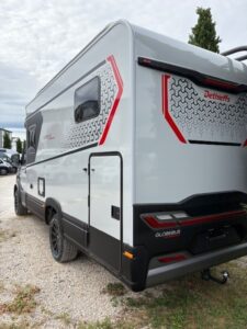 • Serienausstattung Globebus Performance (Außenfarbe Indium-Grau Metallic, Luftfederung Hinterachse mit Differenzialsperre, Vorderachse verstärkt (Achslast 2.100 kg), Höherlegung des Fahrwerks um 50 mm, LED Hauptscheinwerfer mit LED-Tagfahrlicht, 18? Felgen Hanma matt schwarz, 255/55 R18 118 T Loderreifen (M+S Schneeflocke), Navigationssystem Discover Pro mit 32 cm (12?) Touch-Farbdisplay, Multifunktions-Lederlenkrad mit Tiptronic, Digitales Cockpit Pro, Klimaanlage AirCare Climatic, Elektrische Parkbremse, Assistenzpaket Advanced inkl. automatischer Distanzregelung (ACC), intelligent Speed-/Travel-/Lane-Assist, u.v.m., Verkehrszeichenerkennung, Bergan-/-abfahrhilfe, Drehsitze links/rechts mit Armlehnen, Außen-Ausstattung, Außendesign First-Edition mit charakteristischen ShapeLine LED-Heckleuchten, Lifetime Smart Aufbaukonstruktion mit GFK-verkleidetem Unterboden, Rahmenfenster, Aufbautür 70 cm inkl. Fenster, Zentralverriegelung und Fliegengittertür, Alu-Riffelblech in der Heckgarage, Türen links und rechts mit Einhandbedienung, Scheinwerfer (LightBar) auf der Fronthaube, Leiter und Dachreling schwarz, Markise schwarz inkl. LED Band (Vorzeltleuchte), Innen-Ausstattung, Tisch Sitzgruppe mit schwenkbarer Erweiterung, 7-Zonen EvoPore Matratzen (15 cm dick) auf ergonomischen Holzlattenrosten, Bettenumbau Einzelbetten zu Doppelbett, Dachschrankhinterlüftung AirPlus zur Vermeidung von Kondenswasserbildung, Dachlüfter mit Ventilator an der Küche, Installation, SCU lite: Steuerung von Kühlschrank/Heizung per Handy-App, Indirekte Beleuchtung (Dachschränke, Wand Sitzgruppe, Küchenrückwand, Heck quer (offene Ablage)), 32? TV Smart inkl. Halter, CamperNet Router mit Dachantenne.)
