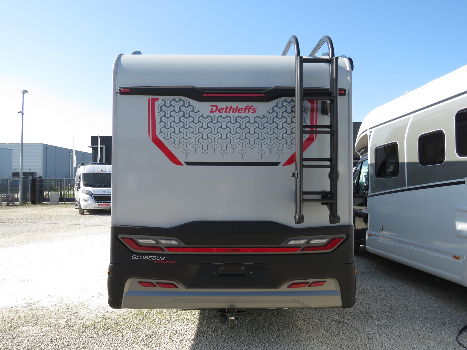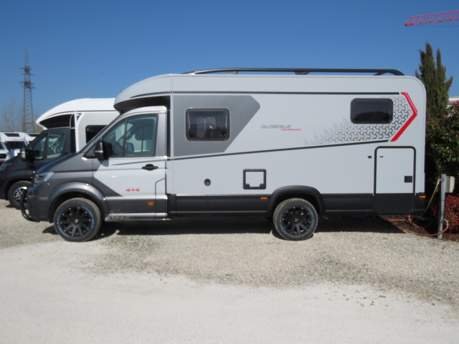 - Serienausstattung Globebus Performance (Außenfarbe Indium-Grau Metallic, Luftfederung Hinterachse mit Differenzialsperre, Vorderachse verstärkt (Achslast 2.100 kg), Höherlegung des Fahrwerks um 50 mm, LED Hauptscheinwerfer mit LED-Tagfahrlicht, 18? Felgen Hanma matt schwarz, 255/55 R18 118 T Loderreifen (M+S Schneeflocke), Navigationssystem Discover Pro mit 32 cm (12?) Touch-Farbdisplay, Multifunktions-Lederlenkrad mit Tiptronic, Digitales Cockpit Pro, Klimaanlage AirCare Climatic, Elektrische Parkbremse, Assistenzpaket Advanced inkl. automatischer Distanzregelung (ACC), intelligent Speed-/Travel-/Lane-Assist, u.v.m., Verkehrszeichenerkennung, Bergan-/-abfahrhilfe, Drehsitze links/rechts mit Armlehnen, Außen-Ausstattung, Außendesign First-Edition mit charakteristischen ShapeLine LED-Heckleuchten, Lifetime Smart Aufbaukonstruktion mit GFK-verkleidetem Unterboden, Rahmenfenster, Aufbautür 70 cm inkl. Fenster, Zentralverriegelung und Fliegengittertür, Alu-Riffelblech in der Heckgarage, Türen links und rechts mit Einhandbedienung, Scheinwerfer (LightBar) auf der Fronthaube, Leiter und Dachreling schwarz, Markise schwarz inkl. LED Band (Vorzeltleuchte), Innen-Ausstattung, Tisch Sitzgruppe mit schwenkbarer Erweiterung, 7-Zonen EvoPore Matratzen (15 cm dick) auf ergonomischen Holzlattenrosten, Bettenumbau Einzelbetten zu Doppelbett, Dachschrankhinterlüftung AirPlus zur Vermeidung von Kondenswasserbildung, Dachlüfter mit Ventilator an der Küche, Installation, SCU lite: Steuerung von Kühlschrank/Heizung per Handy-App, Indirekte Beleuchtung (Dachschränke, Wand Sitzgruppe, Küchenrückwand, Heck quer (offene Ablage)), 32? TV Smart inkl. Halter, CamperNet Router mit Dachantenne.)