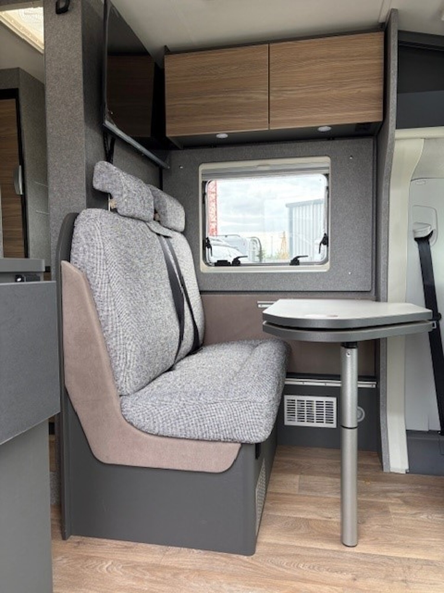 • Sitzgruppe mit Gurtbank inkl. zwei 3-Punkt-Gurten und einhängbarem und erweiterbarem Tisch
