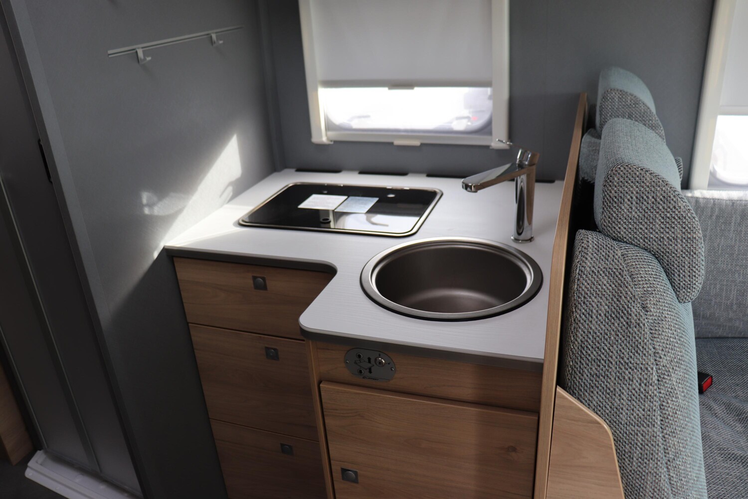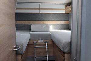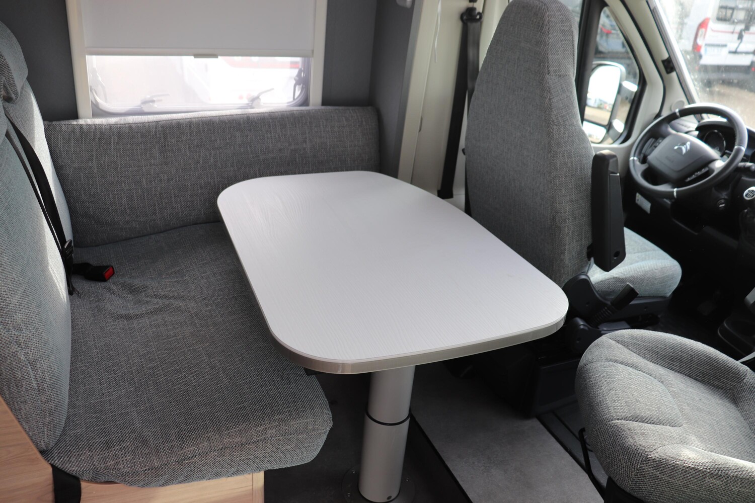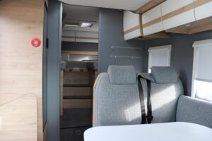 - Family-Paket T 6812, 7052 EB (Ausstellfenster in der T-Haube, Wohnraumtür mit Fenster inkl. Verdunkelung und Zentralverriegelung (inkl. Fahrerhaustüre), Verdunklungsjalousien im Fahrerhaus, Panorama-Dachhaube 70 x 50 cm im Wohnraum, Light Moments: Indirekte Ambientebeleuchtung über den Dachstauschränken, Light Moments: Indirekte Wandflächen-Ambientebeleuchtung, Bettumbau Einzelbetten zu Doppelbett, Gemütliche L-Sitzgruppe mit freistehendem, absenkbarem Tischfuß und 2 integrierte 3-Punkt-Gurte, Stauraum-Türe links)