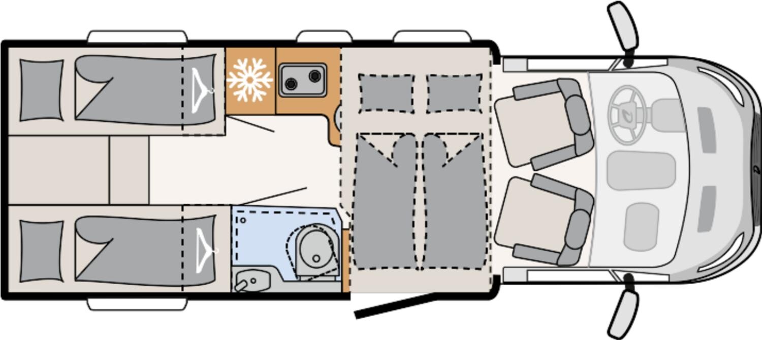 - Comfort Paket T 6615, 6815, 7055 EB (Alufelge Ford 16 Zoll, schwarz, Beifahrerairbag, Wohnraumtür mit Fenster inkl. Verdunkelung und Zentralverriegelung (inkl. Fahrerhaustüre), Ausstellfenster in der T-Haube, Verdunklungsjalousien im Fahrerhaus, Panorama-Dachhaube 70 x 50 cm im Wohnraum, Bettumbau Einzelbetten zu Doppelbett, Gemütliche L-Sitzgruppe mit freistehendem, starren Tischfuß und 2 integrierte 3-Punkt-Gurte, Stauraum-Türe links, Wohnwelt Salerno inkl. Fahrer- und Beifahrer-Sitzbezug, Indirekte Wandflächen-Ambientebeleuchtung, Indirekte Ambientebeleuchtung über den Dachstauschränken, Frontscheibe, beheizbar, Scheibenwischer mit Regensensor, Notbrems-Assistent, aktiv (kamerabasiert), Fahrspur-Assistent mit Müdigkeitswarner, Fernlicht-Assistent und Fahrspurhalte-Assistent, Scheinwerfer-Assistent mit Tag/Nacht-Sensor, Klimaanlage inkl. Staub- und Pollenfilter, Handschuhfach mit Deckel, abschließbar, Innenraumpaket Trend-Line, Seitenschutzleisten in Wagenfarbe lackiert, Stoßfänger vorn in Wagenfarbe lackiert, Nebelscheinwerfer, Scheinwerfer mit statischem Abbiegelicht, Außenspiegel elektrisch einstellbar und beheizbar)