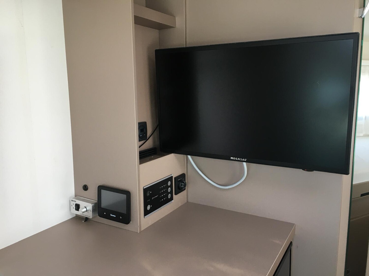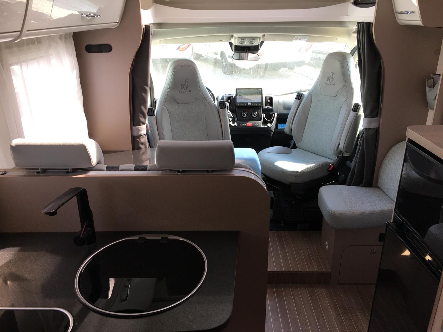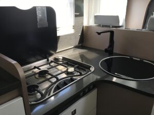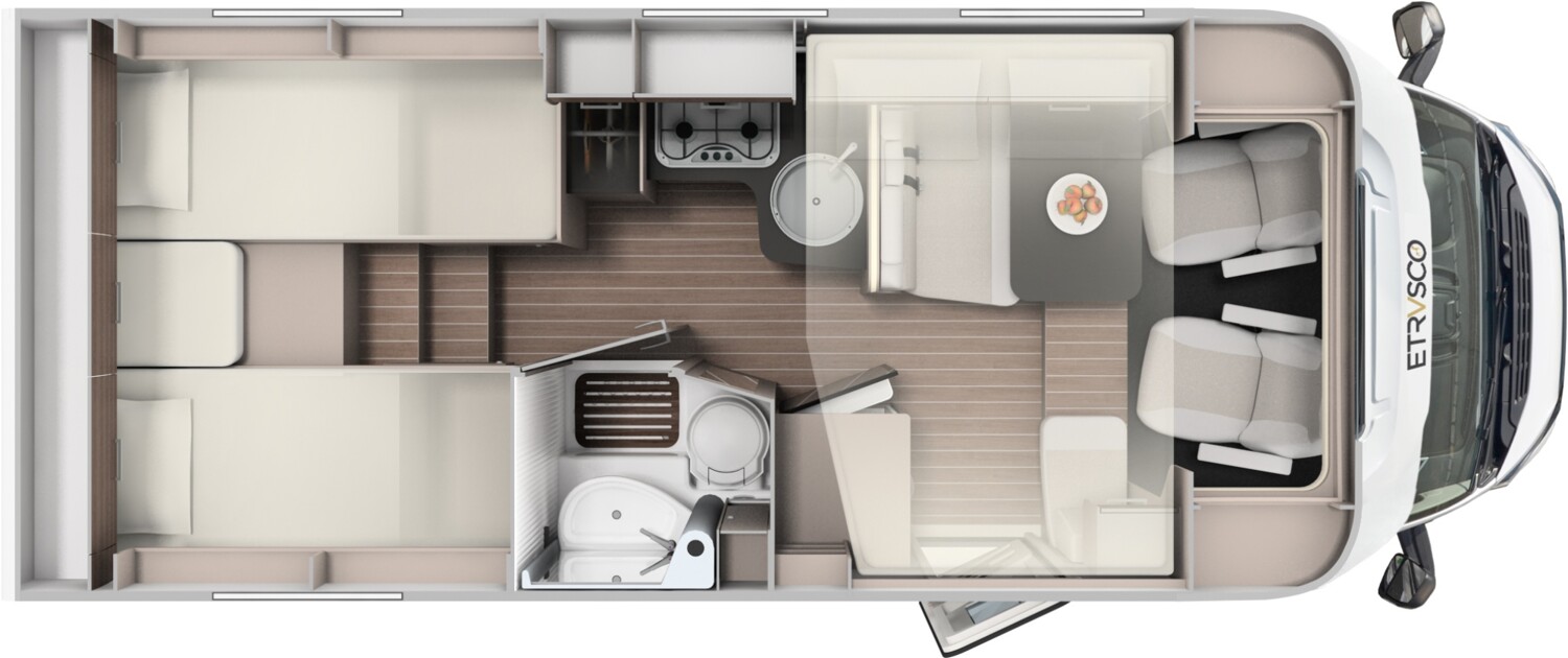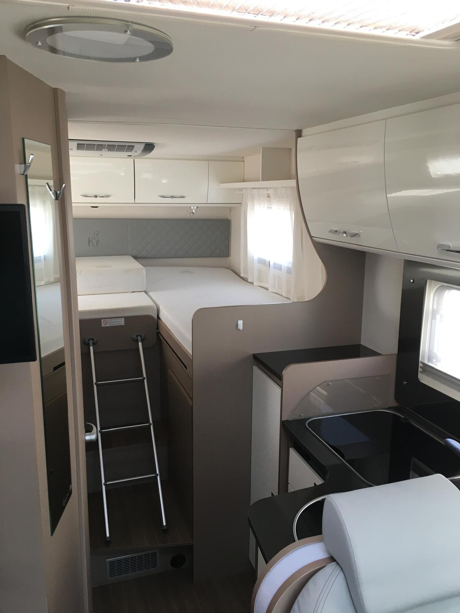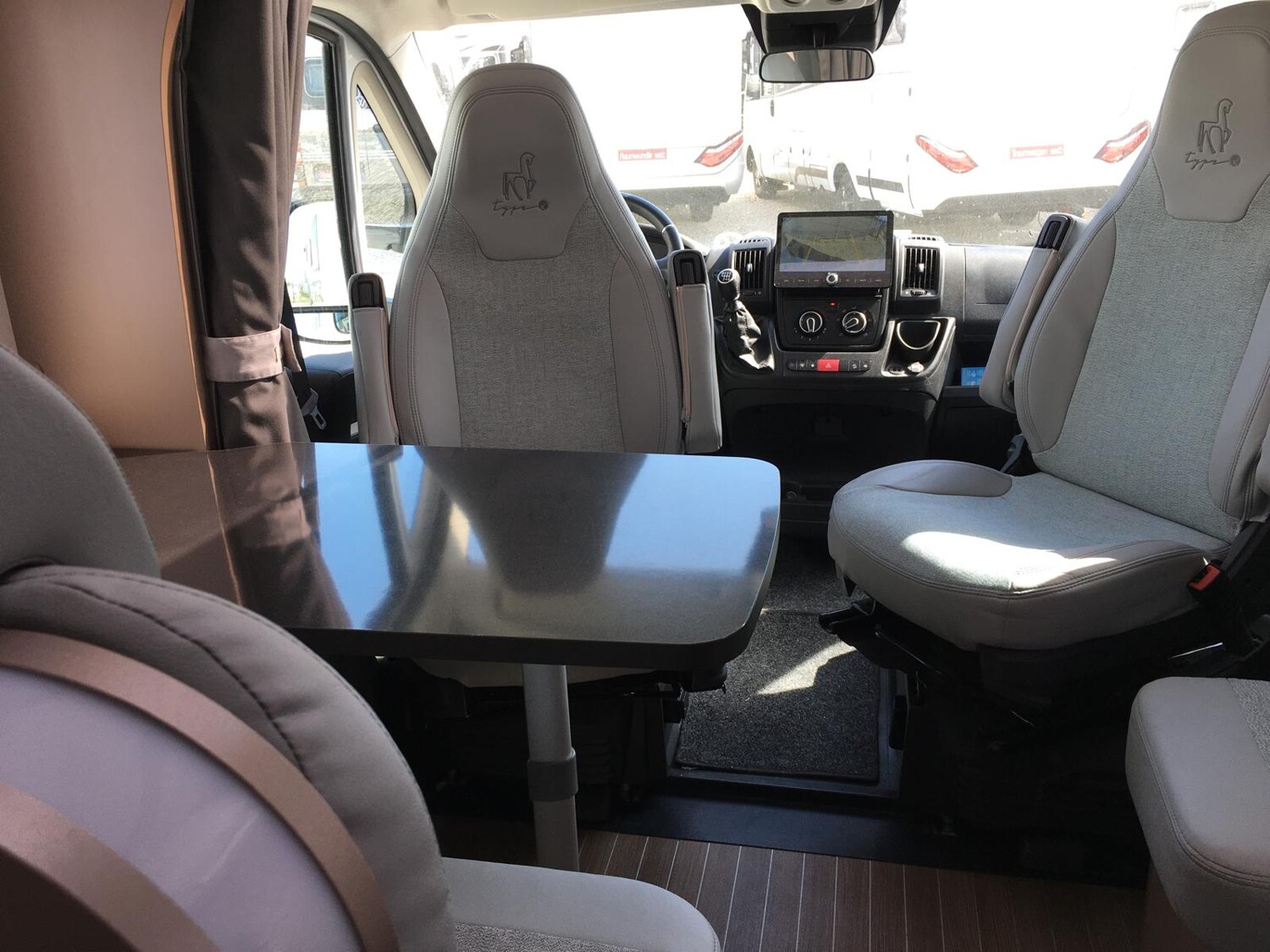- Basic Paket (Panoramadachhaube über Küche, Klarglasdachhaube 40×40, Duschraumverkleidung, Spiegel mit indirekter Beleuchtung und Garderobenhaken, Holzlattenrost in der Dusche, Captain Chairs inkl. Wohnraumbezüge, zusätzl. Steckdose im Dachschrank über dem Küchenblock, Steckdose in der Garage)