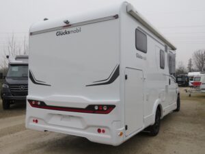 - Serienausstattung Glücksmobil (Zenec Navi inkl. DAB+ und Truck Navigation, Rückfahrkamera (einfach, Rahmenfenster inkl. Küchenrückwand, Cassettenmarkise 4,0m manuell, 16 Zoll Alufelgen, Aufbautüre mit Fenster und Zentralverriegelung, Verdunkelungsjalousien im Fahrerhaus, Panorama-Dachhaube 70x50cm im Wohnraum, L-Sitzgruppe, Garagenklappe links, Indirekte Beleuchtung, Indirekte Gardinen-Beleuchtung o. Dimmung, CP Plus, Duschrost, Vorb. Solaranlage, Vorb. Dach-Klimaanlage, Ausstellfenster in der T-Haube, Küchenrückwand beleuchtet, Wohnwelt Heron, GT Abklebung, Bettenumbau EB zu DB, Glücksmobil Beklebung)
