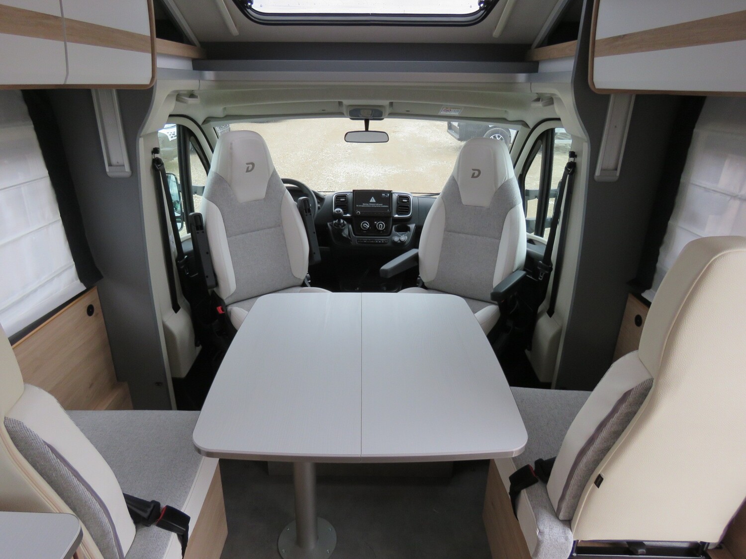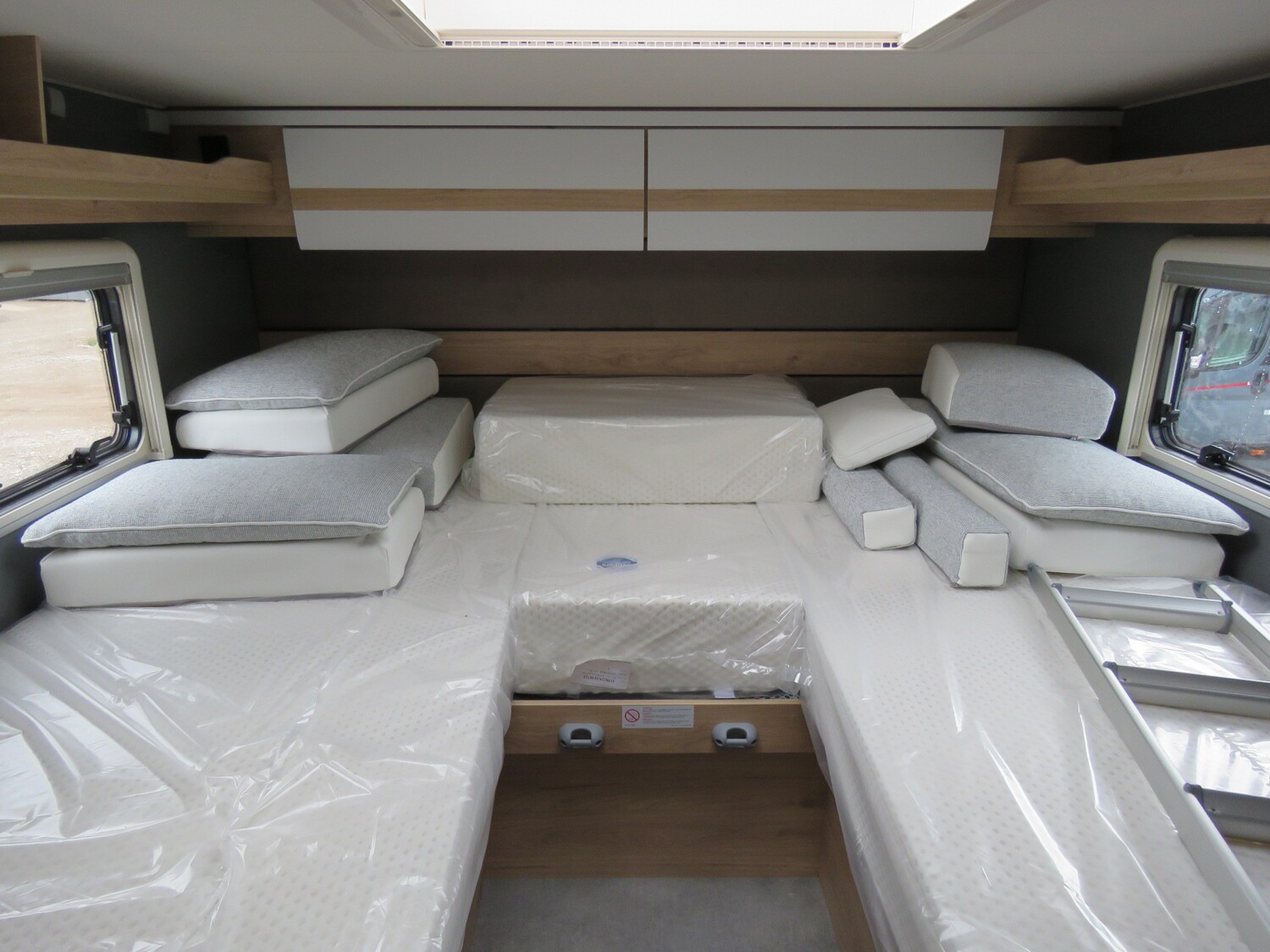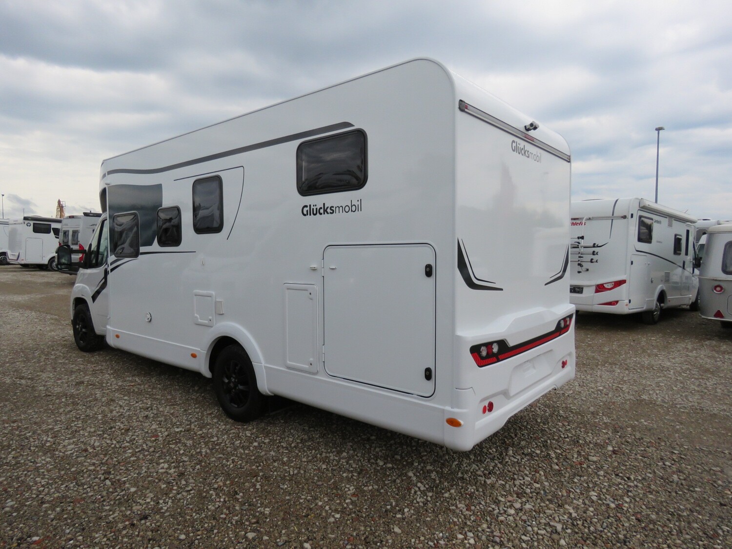 - Serienausstattung Glücksmobil (Zenec Navi inkl. DAB+ und Truck Navigation, Rückfahrkamera (einfach, Rahmenfenster inkl. Küchenrückwand, Cassettenmarkise 4,0m manuell, 16 Zoll Alufelgen, Aufbautüre mit Fenster und Zentralverriegelung, Verdunkelungsjalousien im Fahrerhaus, Panorama-Dachhaube 70x50cm im Wohnraum, L-Sitzgruppe, Garagenklappe links, Indirekte Beleuchtung, Indirekte Gardinen-Beleuchtung o. Dimmung, CP Plus, Duschrost, Vorb. Solaranlage, Vorb. Dach-Klimaanlage, Ausstellfenster in der T-Haube, Küchenrückwand beleuchtet, Wohnwelt Heron, GT Abklebung, Bettenumbau EB zu DB, Glücksmobil Beklebung)