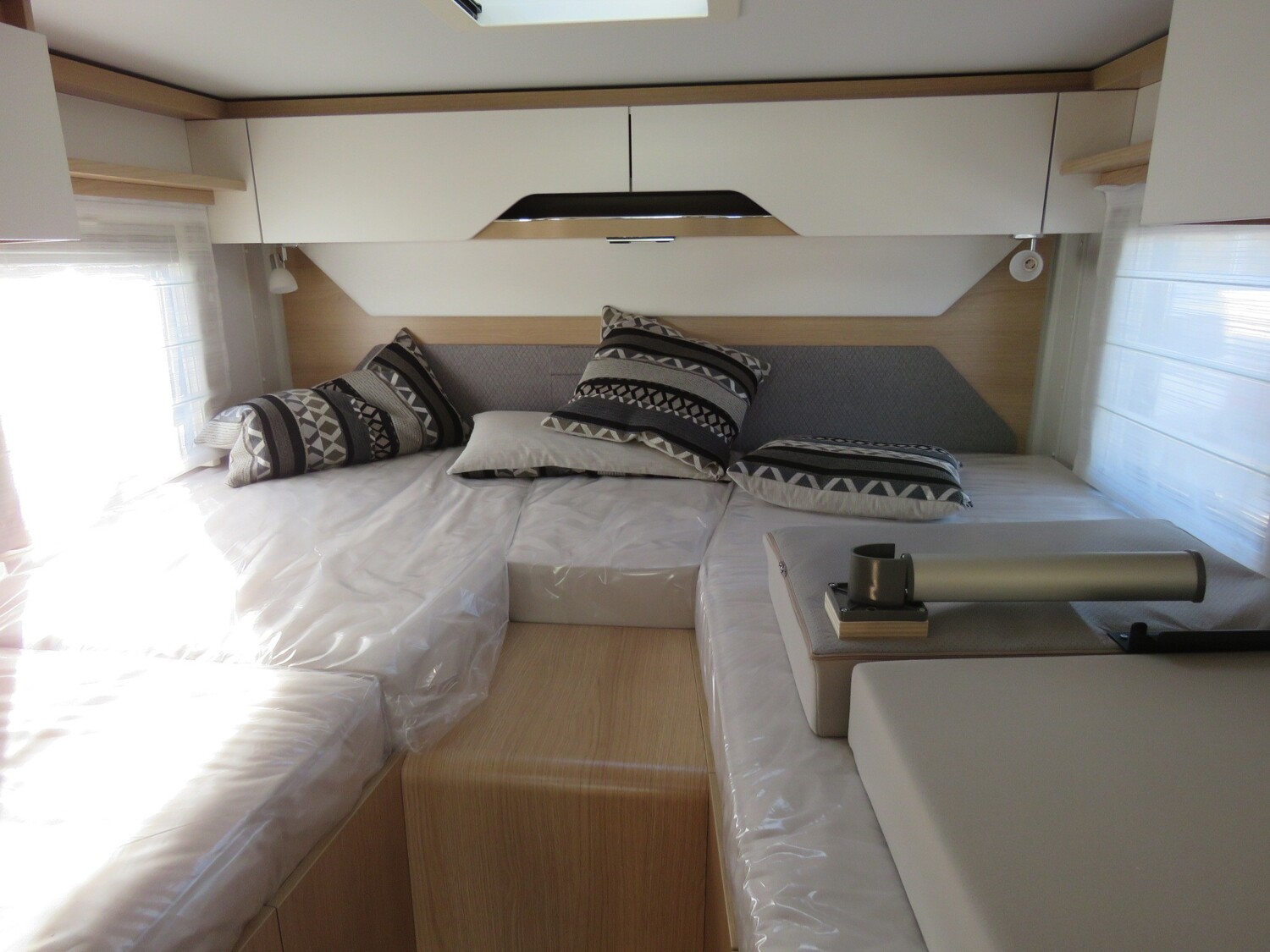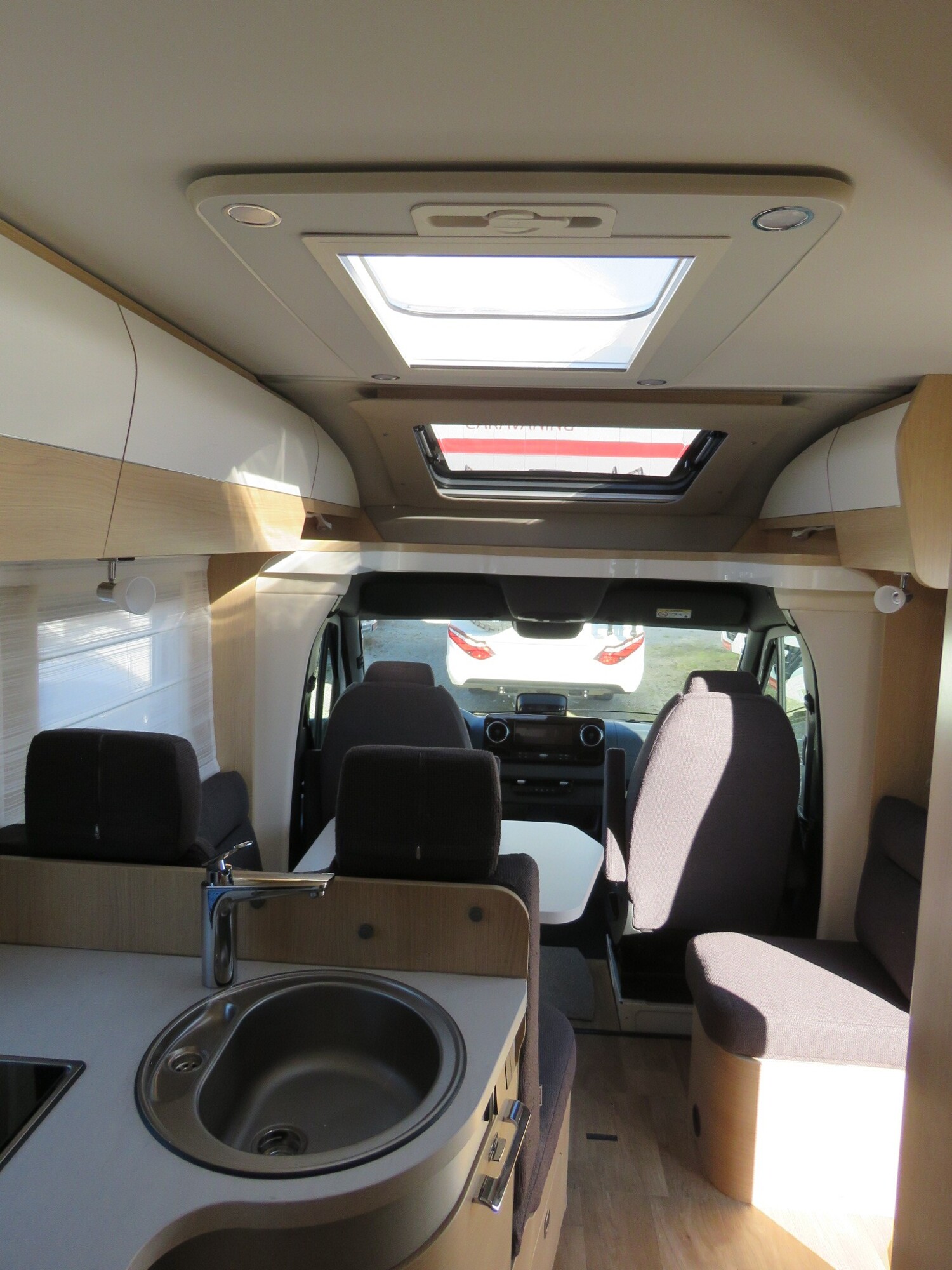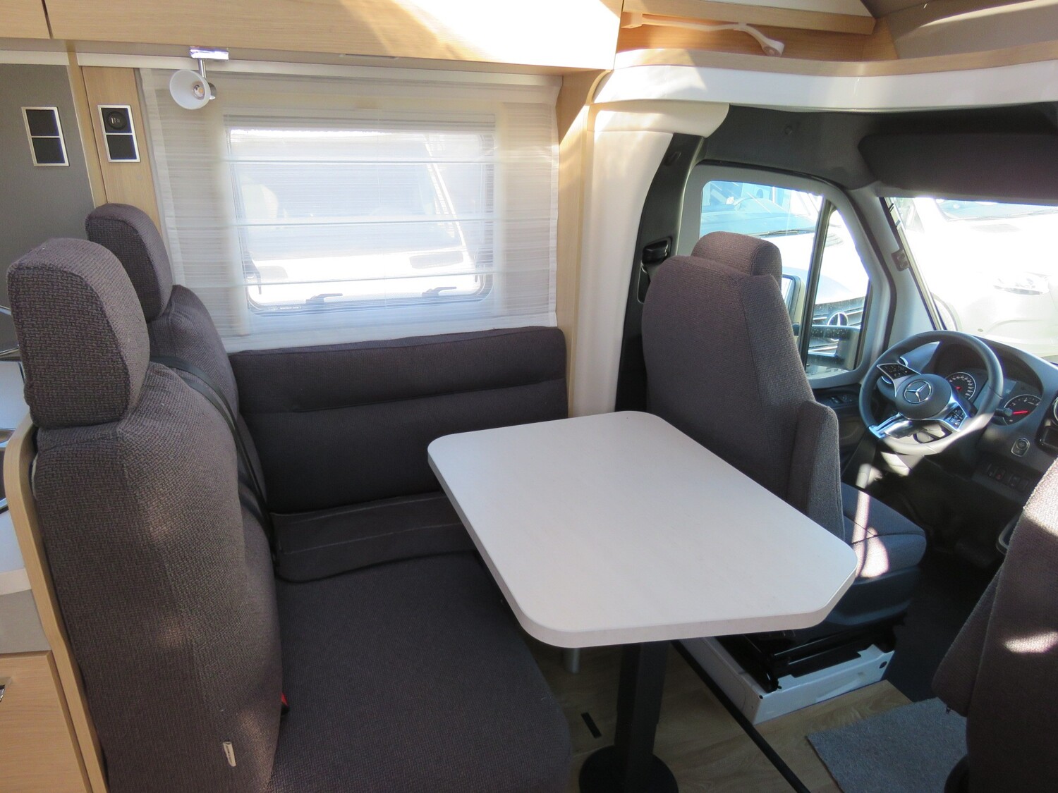 - Whiteline Paket BMC-T Markise mit Adapter, Gehäuse weiß, 400 x 250 cm Aktiver Abstands-Assistent DISTRONIC PLUS inkl. Lenkrad-Multifunktionstasten Ambient-Light-System: Mehr-Ebenen Lichtsystem mit dynamischer und individueller Steuerung der Beleuchtung (inkl. Lichttemperatur) sowie stimmungsvoller Sockelbeleuchtung Bettenbau für Komfort L-Sitzgruppe mit absenkbarem Tisch Mercedes-Benz Sprinter 4,43 t – 417 CDI – 125 KW/170 PS – Euro VI-E Designbeklebung Whiteline Automatikgetriebe 9G-TRONIC inkl. Hold-Funktion Kühlergrill Chrom Stoßfänger, Anbauteile und Kühlergrillrahmen in Wagenfarbe lackiert 16″ Leichtmetallräder (schwarz) mit Ganzjahresbereifung Lederlenkrad (bei Automatikgetriebe) Komfort L-Sitzgruppe mit Loungepolstern, längs-/quer verschiebbarem Tisch und 2 integrierten 3-Punkt-Gurten Schublade und Einlegewanne als Stauraum in der Sitzgruppe Spannbettlaken nach Maß für Heckbetten individuell an Matratzen angepasst 4 Kissen mit Bezug Einlegeboden mit Holzoberfläche 32″ Flachbildschirmhalter 32″ Smart-LED-TV mit integrierten Lautsprechern, Fernbedienung, DVD-Laufwerk, HYMER Smart-Multimedia-System mit Bluetooth (DVB-T/C, DVB-S2) inkl. Receiver MBUX 10,25″ Multimediasystem mit Rückfahrkamera, Sprachsteuerung und Touchscreen inkl. Navigation & Smartphone-Integration Satellitenantenne digital mit 80 cm Spiegel, ohne Receiver Verkehrszeichen-Assistent 4 x 230 V / 1 x 12 V / 1 x Doppel-USB Zusatzsteckdosen (inkl. Küchenwand-Verkleidung)