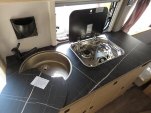 - Komfort-Paket (Fliegenschutz-Rolltür (gesamte Türhöhe), bedienfreundlich durch seitliche Führung, Komfort-Plissee-Rollos, Steckdosenpaket (2 x 230 V Steckdosen und 1 x USB-Doppelsteckdose), Abfalleimer in Eingangstür integriert, Spülenabdeckung mit Schneidebrett für Edelstahlspüle, Zusätzlicher Vergrößerungsspiegel mit Magnethalterung)