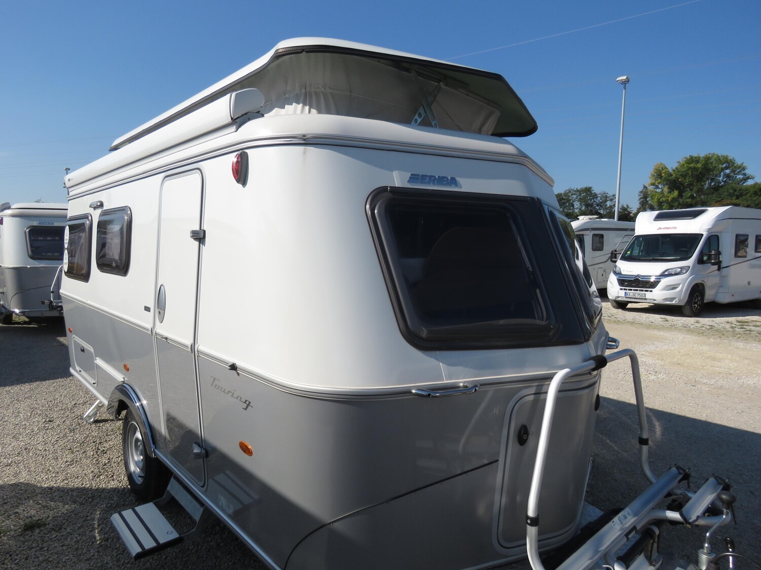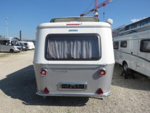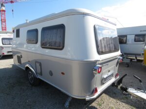- Ausstattungslinie Urban (Außenfarbe White Silver) (Seitenwände, Bug und Heck in Glattblech, Farbe White Silver, Möbeldekor Tindari, Ambientelicht XL mit indirektem Licht oberhalb der Dachstauschränke und zwei zusätzliche ERIBA Multifunktions-Akkuleuchten, 2 Kissen mit Bezug)