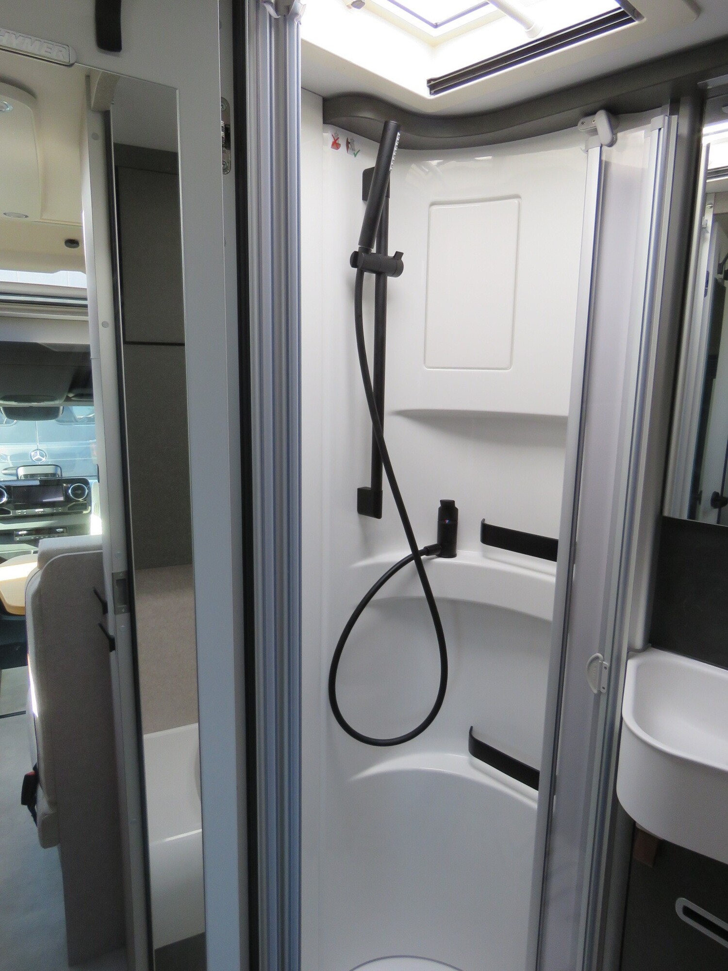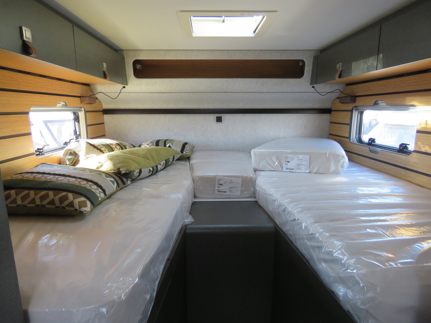 • Wohnkomfort-Paket (Schlafsystem mit Tellerfederrost für Heckbett(en), Spannbettlaken nach Maß für Heckbetten individuell an Matratzen angepasst, Filzverkleidung in Heckgarage, Einlegeboden in der Dusche für ebenen Laufboden, 4 Kissen mit Bezug, Ambient-Light-System: Mehr-Ebenen Lichtsystem mit dynamischer und individueller Steuerung der Beleuchtung (inkl. Lichttemperatur) sowie stimmungsvoller Sockelbeleuchtung, Lichtpaket (Multifunktionale Pendelleuchte sowie eine Ambiente-Leseleuchte für die Multifunktionswände), 4 x 230 V / 1 x 12 V Zusatzsteckdosen)