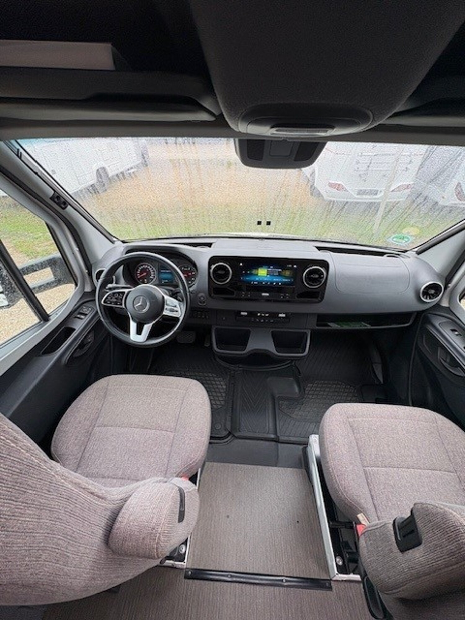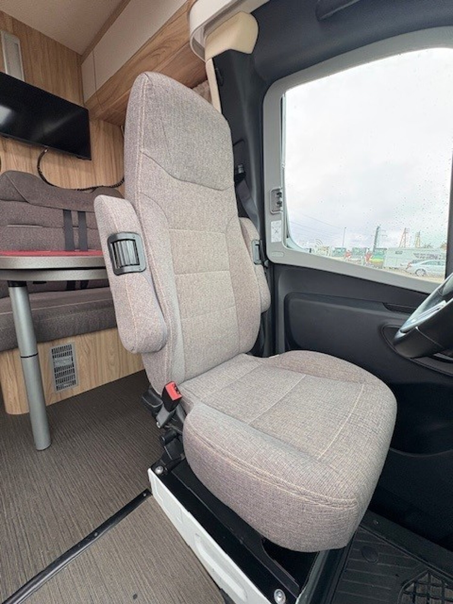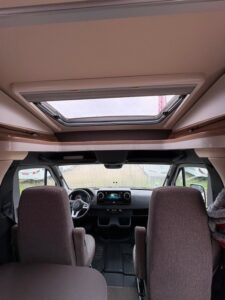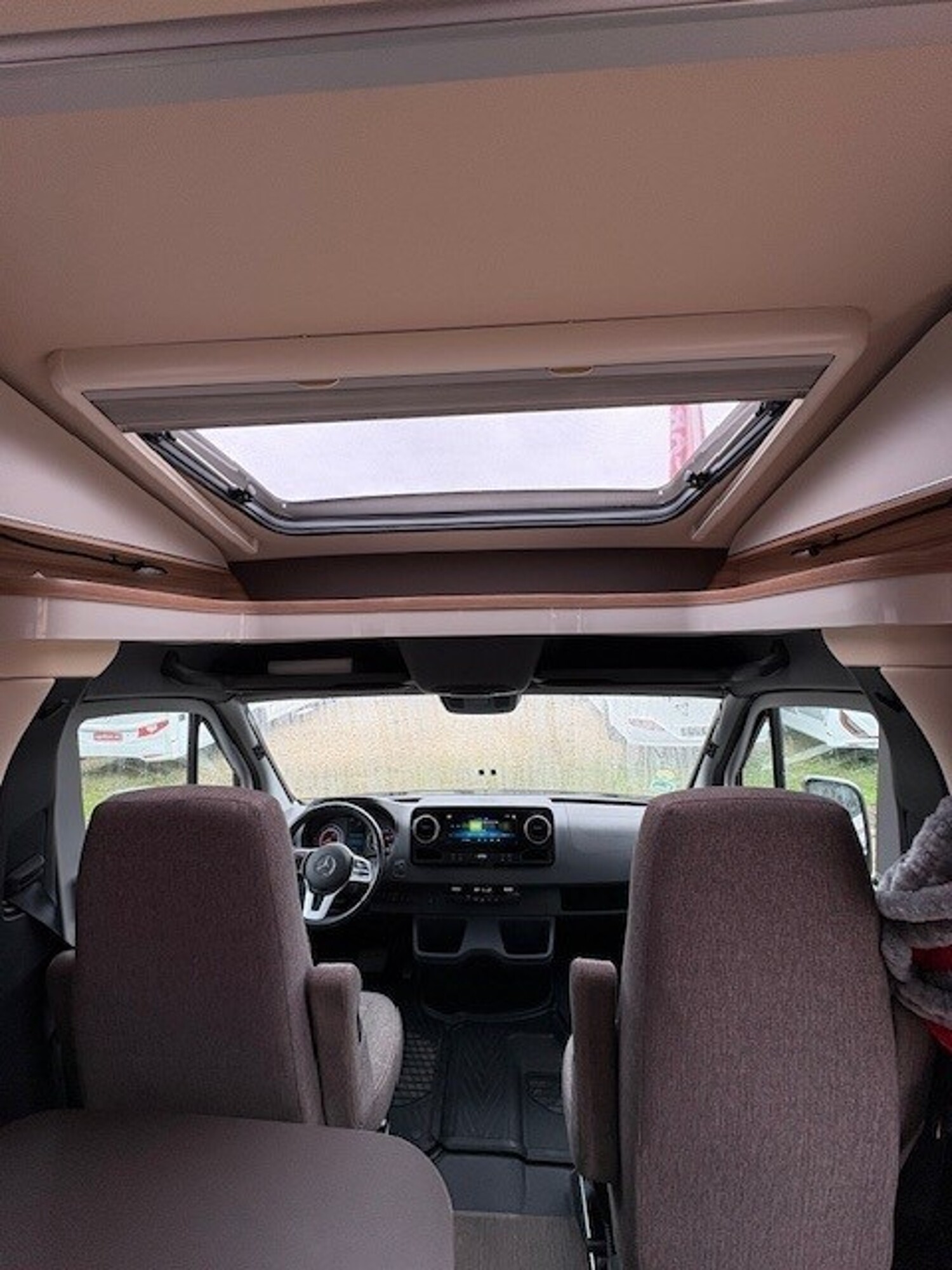 • Komfort Plus-Paket 7 (Fliegenschutzrollo an der Eingangstür, Panoramadach über Fahrerhaus, manuell ausstellbar, Faltverdunkelung für Fahrerhaus)