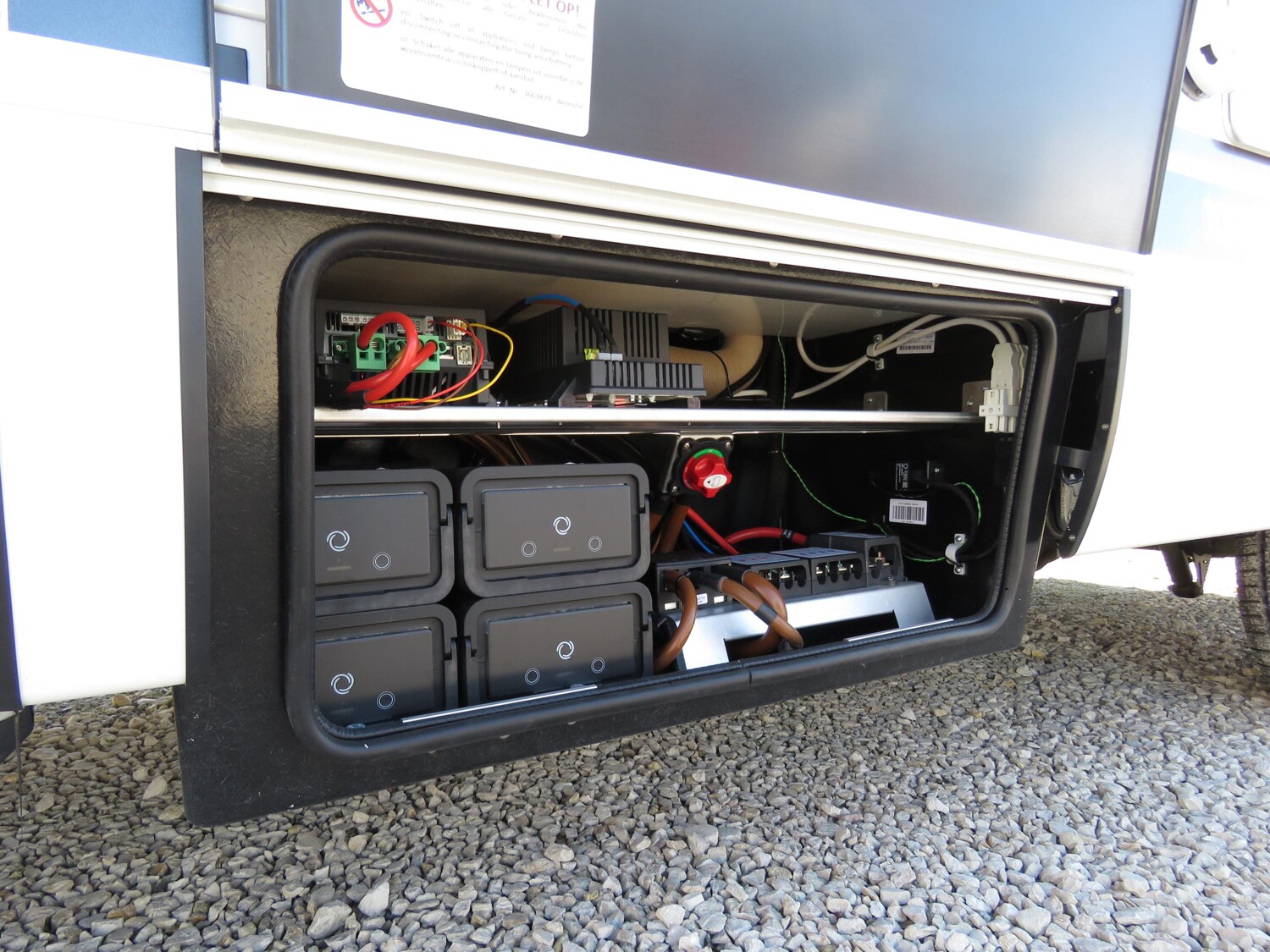 • Autarkie-Paket Lithium XL (HYMER-Smart-Battery-System 2.0 – Erweiterung: Zweites Batteriemodul Aufbau 80 Ah LFP inkl. Zusatzlader (Gesamtkapazität 160 Ah), HYMER-Smart-Battery-System 2.0 – Erweiterung: Drittes und Viertes Batteriemodul Aufbau 2 x 80 Ah LFP (Gesamtkapazität 320 Ah), Wechselrichter 12 V auf 230 V, 1800 Watt mit Netzvorrangschaltung)