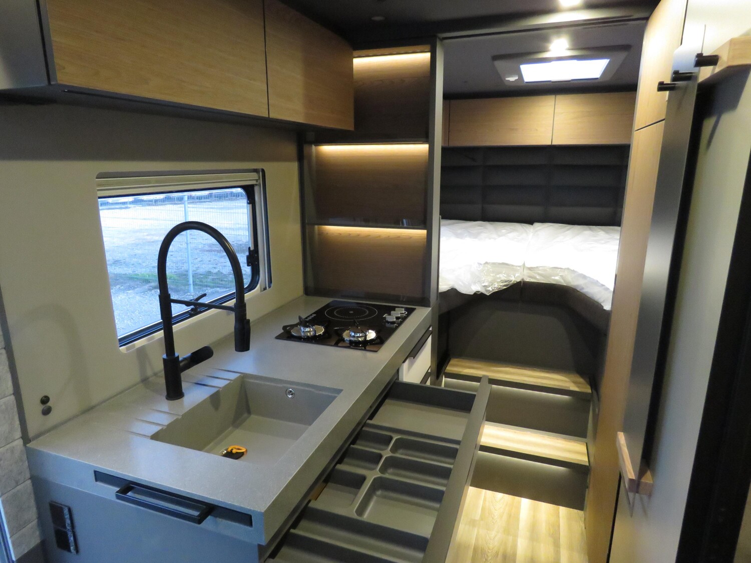 - Kühlschublade in Küchenblock (anstelle Absorber Kühlschrank (Kompressor, 138l, mit separatem Gefrierfach 12l), inkl. Gastro Norm Behälter (nur möglich in Verbindung mit Lithium Energie Paket LEP, nicht möglich in Verbindung mit Geschirrspülmaschine und/oder Backofen)