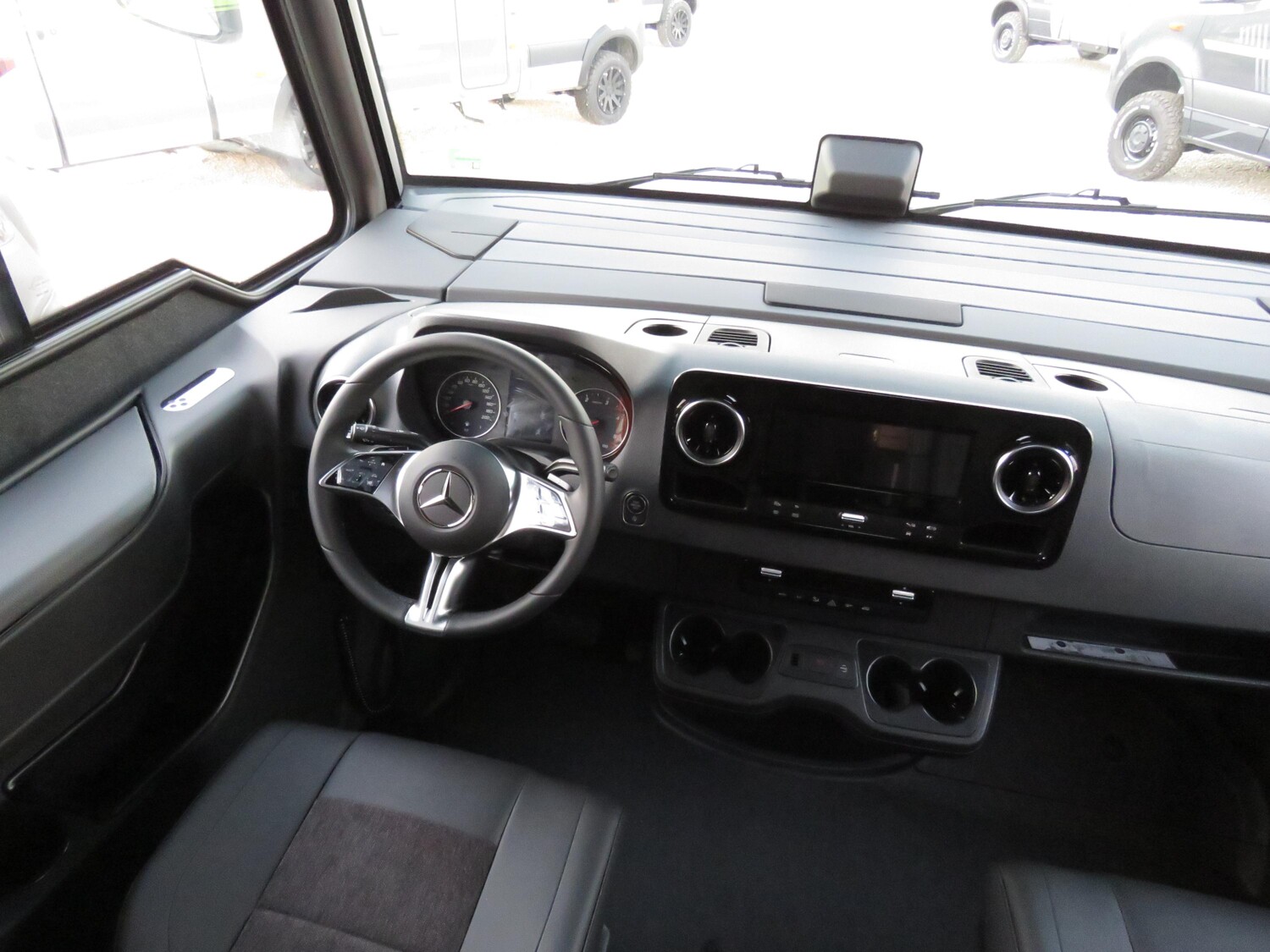 - FCP – Fahr-Comfort Paket (Klimaanlage Thermotronic (vollautomatische Klimaanlage mit Pollenfilter), Aktiver Abstands-Assistent Distronic, Multimediasystem MBUX, 10,25″ inkl. Festplattennavigationssoftware, Sprachsteuerung, DAB+, Touchscreen und Rückfahrkamera, Elektrische Feststellbremse, Leichtmetallfelgen 16″, schwarz, mit Ganzjahresbereifung (M+S / Alpin) (kein Aufpreis in Kombination mit Fahr-Comfort Paket, Code V8040098), Kraftstofftank 92ltr., Multifunktionslenkrad in Lederausführung, Ladepaket Instrumententafel (2xUSB-C-Stecker 5V/1x12V Steckdosen), Ablage für Smartphones inkl. wireless charging Funktion, Verstärkte Vorderachse, Cupholder, Klappdeckel für Ablagefächer im Armaturenbrett, Batterietrennschalter, Elektrische Warmluft-Zusatzheizung für Fahrer und Beifahrer (gleich beim Starten des Motors), Verkehrszeichen Assistent)