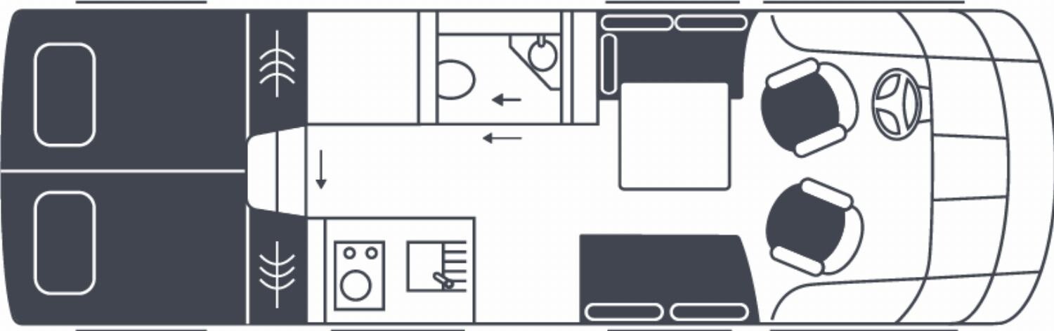 - Sofa Fahrerseite zur L-Sitzbank umbaubar (2 zusätzliche Gurtsitze)