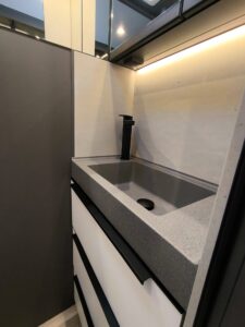- Warmwasserheizung mit thermostatischer Regelung, Heizpatrone und Touchscreen-Bedienpanel, mit separatem Heizkreislauf im Schlafraum