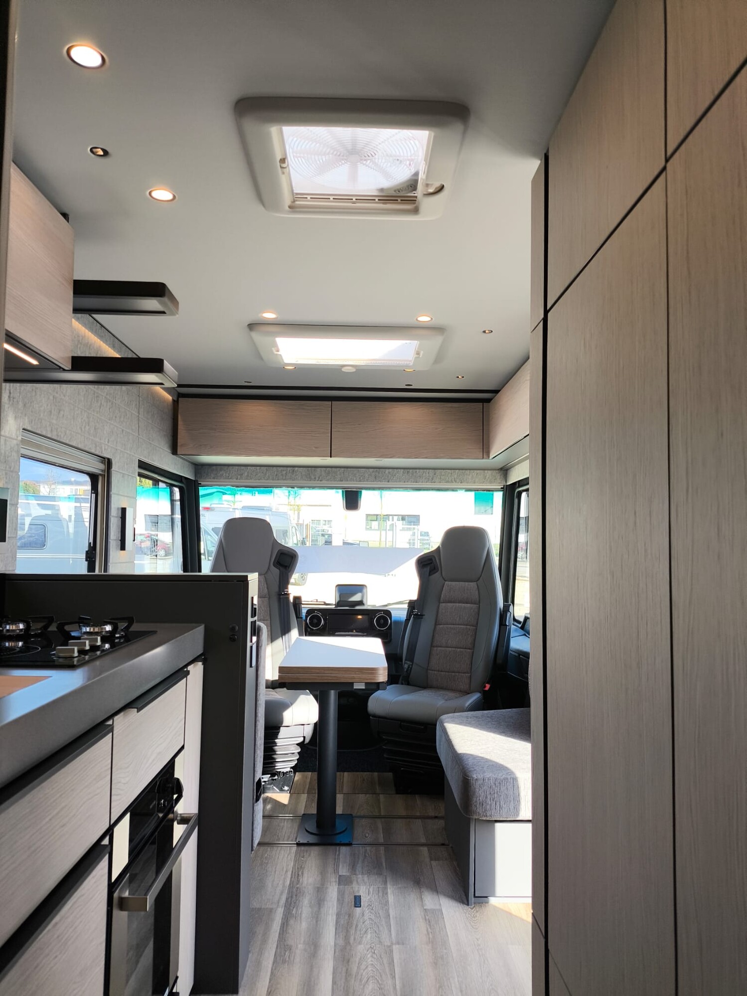 - Panoramadachluke (Midi-Heki) statt Dachhaube über Heckbett (nicht in Verbindung mit Dachklimaanlage Schlafraum)