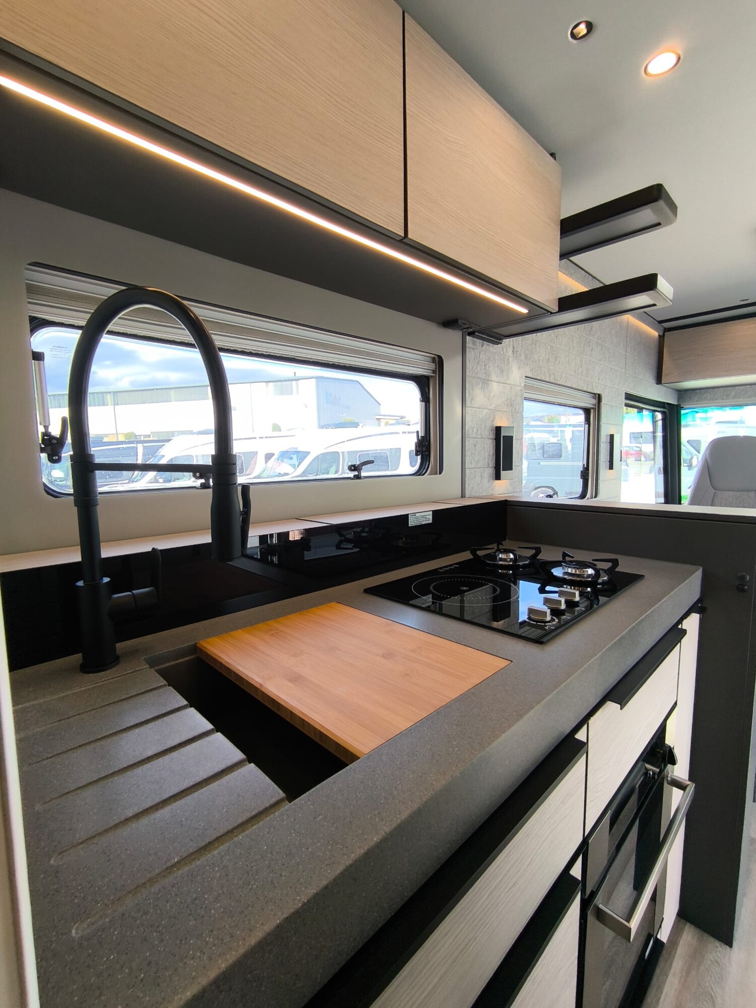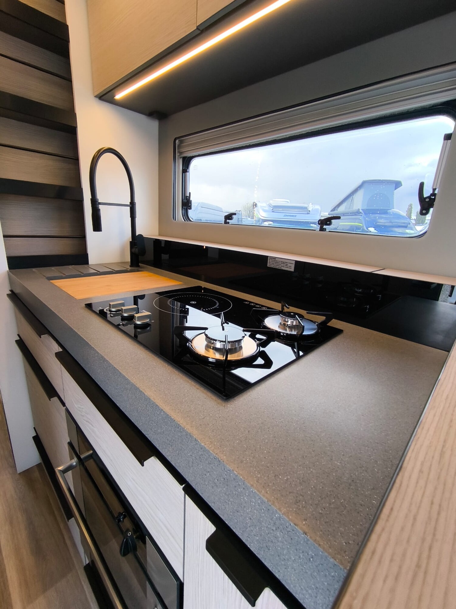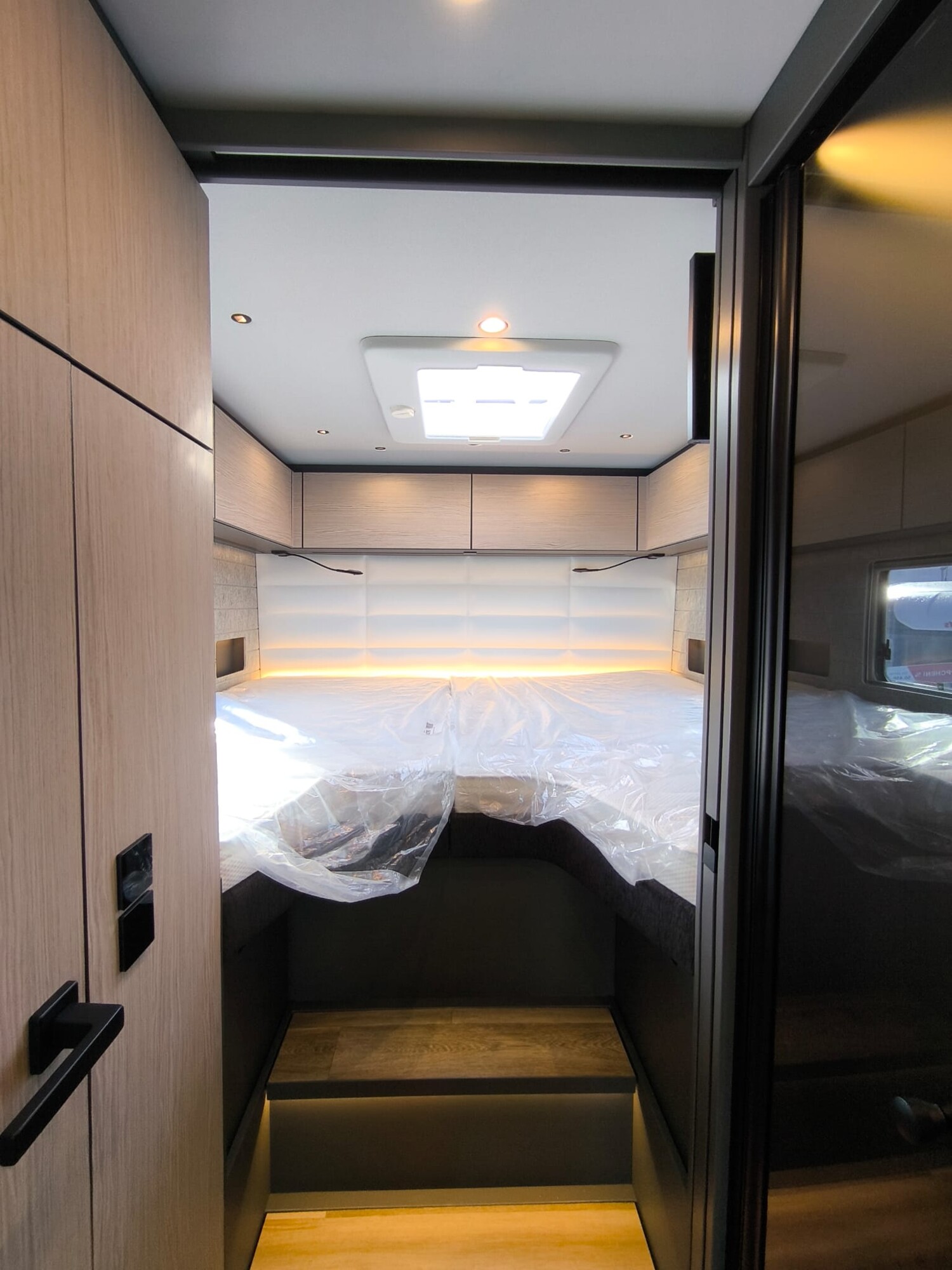 - LP – Liner Paket (Isolationsplissee für die Windschutzscheibe, elektrisch verstellbar, auch als Sonnenblende und Sichtschutz verwendbar, Außenspiegel mit Weitwinkel, elektrisch verstell- und beheizbar (in Wagenfarbe lackiert), Sensorgesteuerte Aufbautür, Panoramadachluke (Midi-Heki) über Wohnraum, Akustikverkleidung an den Seitenwänden, Komfortsitze Fahrer und Beifahrer (SKA), Fenster Fahrer/Beifahrer doppelverglast, Komfortmatratzen inkl. Froli-Schlafsystem für Heckbett, Fliegenschutz-Schiebetür, Intuitives Beleuchtungskonzept (Bewegungs- und Lichtsensoren für Nachtflurbeleuchtung sowie automatische Beleuchtung für Wohnraum, Heckgarage und Versorgungsfach über Tür- und Klappenkontakten))
