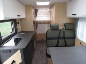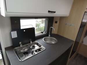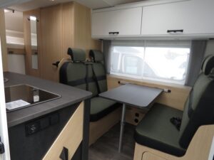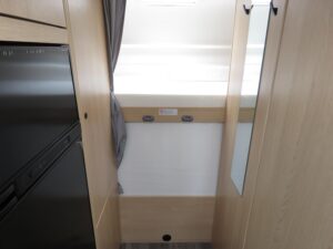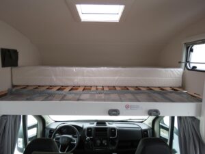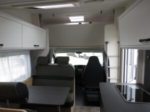 - Basisfahrzeug ? Fiat Ducato 3,5 t (2.2 Multijet, 140 PS): 6 Gang Schaltgetriebe, Frontantrieb, ABS, EBD, ESP inkl. ASR & Hill Holder, Start & Stop Funktion mit Ladebooster, Tempomat, Multifunktionslenkrad, Traction+, manuelle Fahrerhaus Klimaanlage, Fahrer & Beifahrerairbag, 3 Punkt Gurte, drehbare Captain Chair Sitze (Lordosenstütze, Höhen /Neigungsverstellung), elektrische Fensterheber & Zentralverriegelung, elektrisch beheizte Außenspiegel, 60 l Dieseltank, Pannen Set Fix & Go, M+S Campingreifen (Schneeflocke) auf Breitspurfahrwerk, Tagfahrlicht, Scheinwerfer mit schwarzem Rahmen, DAB Antenne im Spiegel. Bad: Variobad mit Duschraumverkleidung, Kassettentoilette (elektr. Pumpe, drehbarer Sitz), Dachhaube mit Insektenschutz, große Spiegelflächen, Kleiderstange in der Nasszelle. Bordtechnik: Bord Control Panel (Füllstände, Batteriekapazitäten), AGM Aufbaubatterie 95 Ah mit 18 A Ladegerät, CEE Außenanschluss 230 V, FI Schutzschalter, 3× USB A & 1× USB C Steckdosen (grundrissabhängig), LED Außen & Wohnraumleuchten, Vorbereitung Rückfahrkamera. Aufbau außen: Dach & Heck in GFK, Seitenwände aus Glattblech Aluminium, 7 Jahre Dichtigkeitsgarantie, doppeltverglaste Ausstellfenster mit Kombirollos, elektrische Trittstufe, Voll LED Heckleuchtenträger, Außenstauraumklappe, Heckgarage bis 150?,,kg Zuladung, Verzurrösen & Beleuchtung. Aufbau innen / Wohnraum: Alkovenbett 210 × 160 cm (72 cm Kopffreiheit, klappbar) mit Sicherheitsnetz, hochwertige Matratzen & Holzlattenroste in allen Festbetten, Isofix Verankerungen (2 Plätze), großzügige Stauräume, hinterlüftete Schränke, Spiegel mit Indirektbeleuchtung, Tischplatten Verlängerung, Möbeldekor Cozy Cottage, Black Flow, Dyna White, Active Grey, Fußboden ?Mountain Lodge?. Küche: Zwei Flammkocher mit 12?,,V Zündung & Glasabdeckung, Rundspülbecken aus Edelstahl, großzügige Arbeitsfläche, 78 l Kühlschrank (11 l Gefrierfach), 122 l Frischwasser (inkl. Boiler) / 92 l Abwasser, Servo Soft Schubkästen, Flex Schienensystem mit 2 Haken, LED Bandbeleuchtung, integrierter Abfalleimer. Heizung / Gas: Truma Combi 6 Gasheizung, Gasflaschenkasten für 2 × 11 kg, zentral angeordnete, gut zugängliche Gasabsperrhähne.
