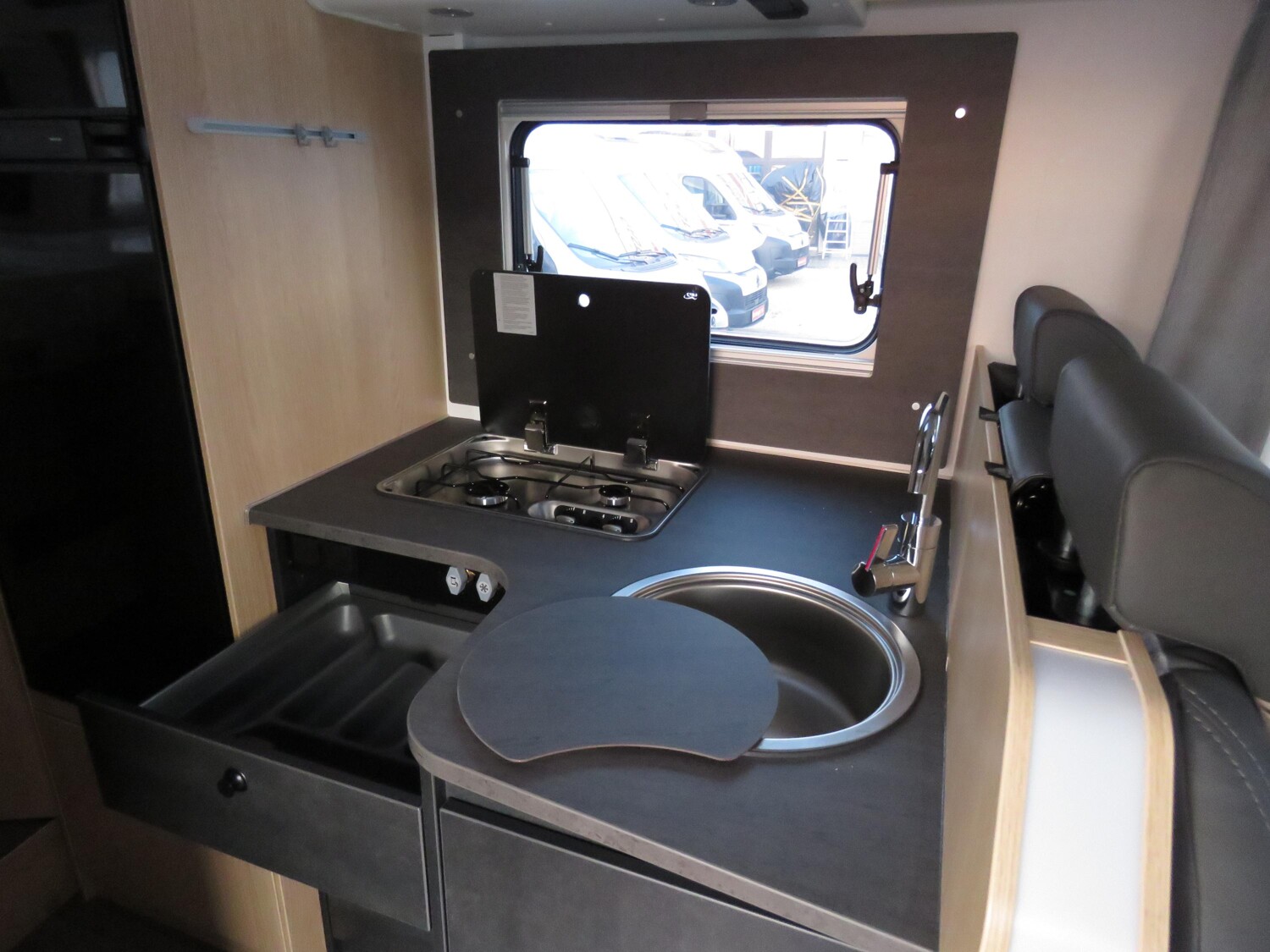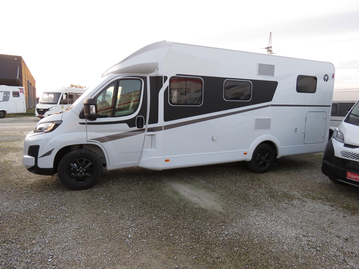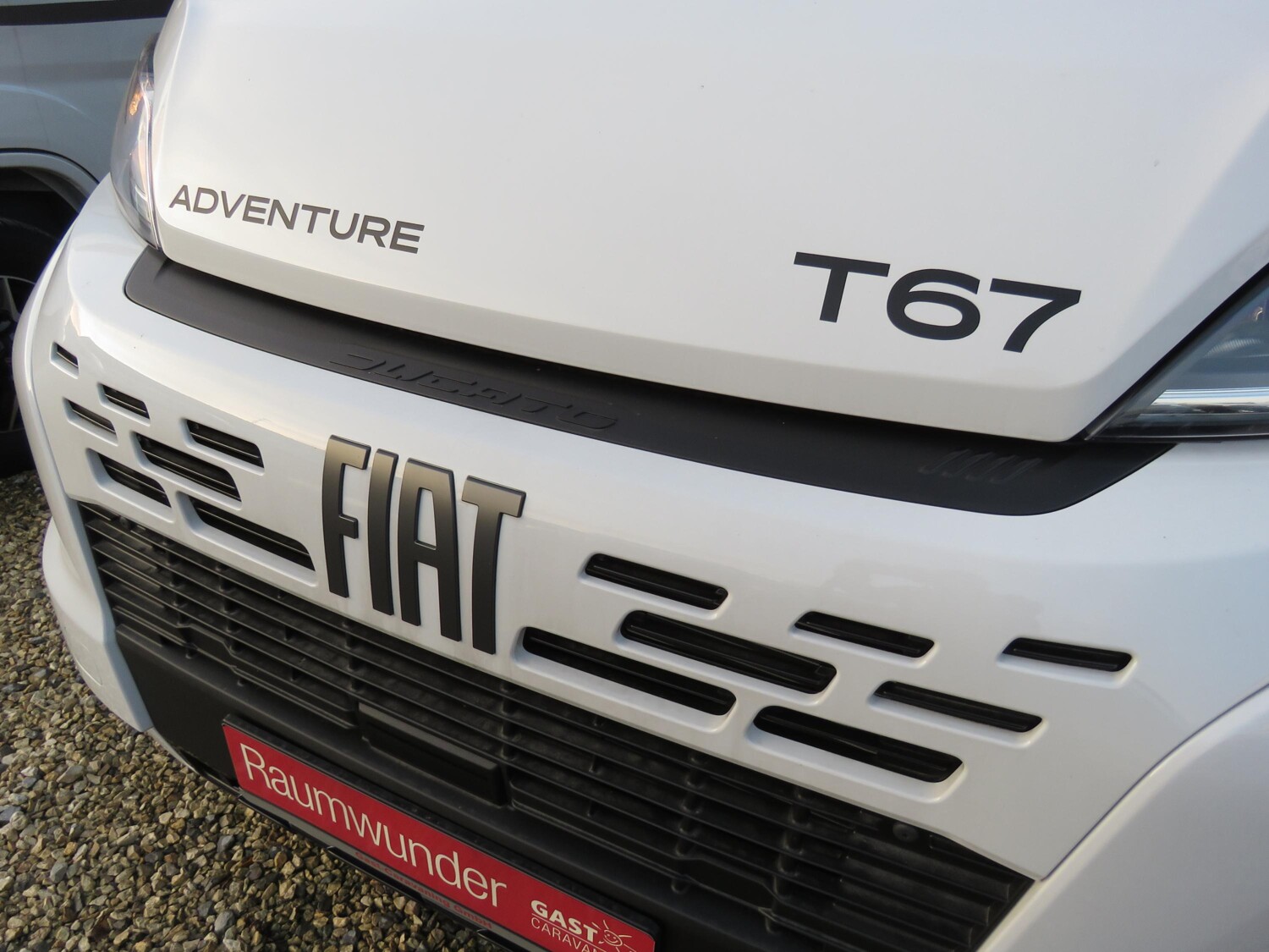 - Adventure Ausstattung 67 (Fiat Ducato 3.500 kg | 2.2 | 103 kW | 140 PS Euro 6 | 6-Gang-Schaltgetriebe, Fiat Weiß, Adventure Beklebung, Wohnwelt Adventure, Design Applikation Heck, Fenster in Fronthaube, Rahmenfenster, 2. Außenstauraumklappe (Größe modellabhängig), Großer Kühlschrank 156 l mit separatem Frosterfach 29 l, Bettenumbau Einzelbett zu Doppelbett, Paket One Black (Markise, Fahrradträger 3-fach), Bridge Light, Komfort Eingangstür mit Fenster, Fliegengittertür (einteilig), Panoramadachhaube 70 x 50 cm, Klarglasdachhaube 40 x 40 cm, Stoßfänger lackiert, Skid Plate Schwarz, Nebelscheinwerfer, Lenkrad & Schaltknauf in Lederausführung, Luftauslässe mit Applikationen Silber (Techno-Trim), 16″ Alufelgen Bi-Color)