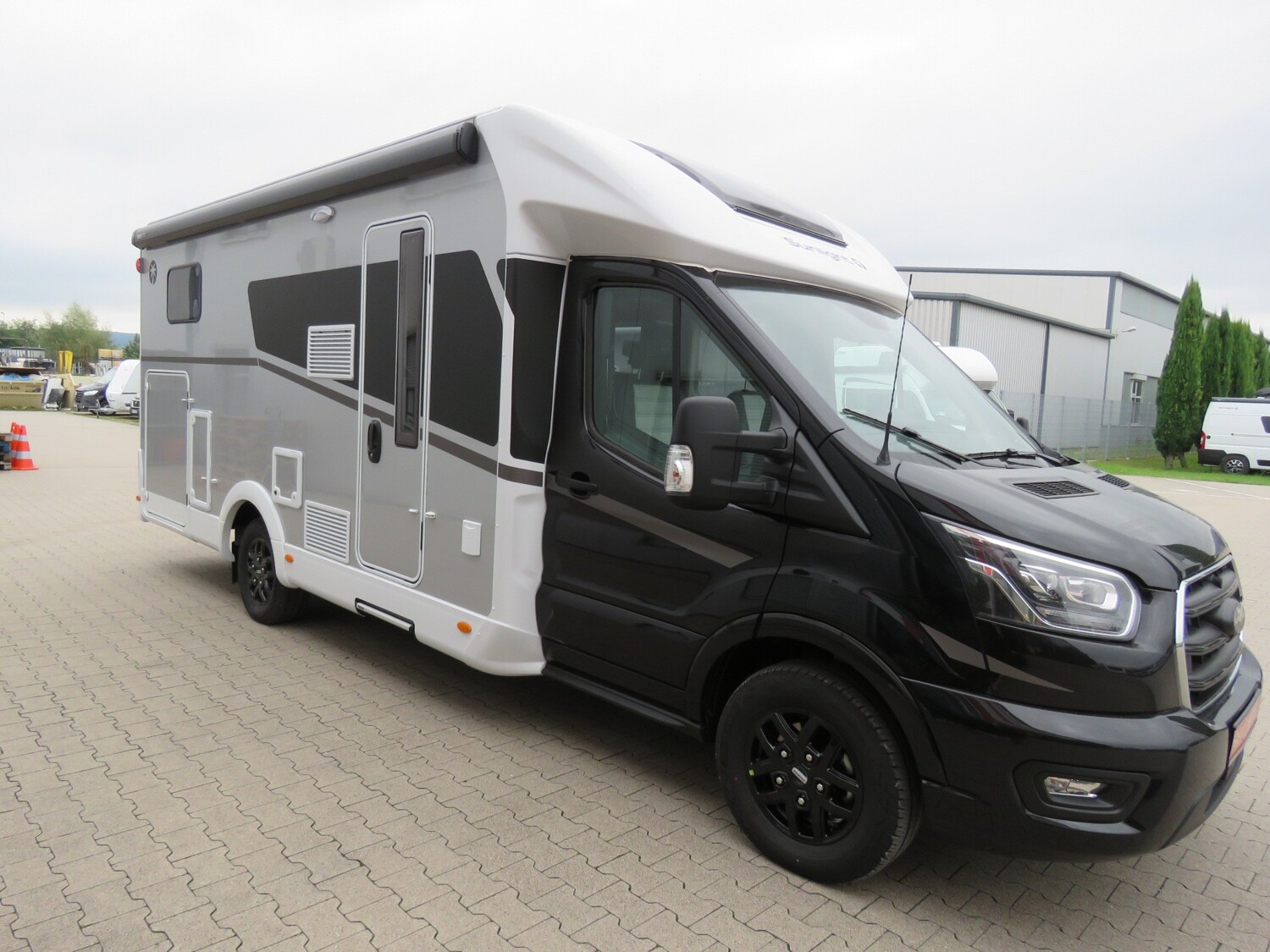 - Adventure Edition (Ford Transit 3.500 kg – 2,0l TDCi – 96 kW (130 PS) – Euro VI E – 6-Gang-Schaltgetriebe, Obsidian Schwarz, Seitenwand Silber Glattblech, 16″ Alufelgen schwarz, Paket One Black (Markise, Fahrradträger 3-fach), Wohnwelt Adventure, Adventure Abklebung, Großer Kühlschrank 156 l mit separatem Frosterfach 29 l, Rahmenfenster, Fenster in T-Haube, Design Applikation Heck, 2. Außenstauraumklappe (Größe modellabhängig), Bettenumbau Einzelbett zu Doppelbett, Bettenumbau im Bereich Sitzgruppe (T 690 L), Basic Paket Teilintegrierte (Bridge Light, Komfort Eingangstür mit Fenster, Fliegengittertür (einteilig), Panormadachhaube über Küche, Klarglasdachhaube 40×40, Kabelvorbereitung für Rückfahrkamera), Chassis Paket (Klimaanlage inkl. Staub- und Pollenfilter, Handschuhfach mit Deckel, zusätzlich abschließbar, Stoßfänger lackiert, Nebelscheinwerfer, Scheinwerfer mit statischem Abbiegelicht, Seitenschutzleisten in Wagenfarbe lackiert))