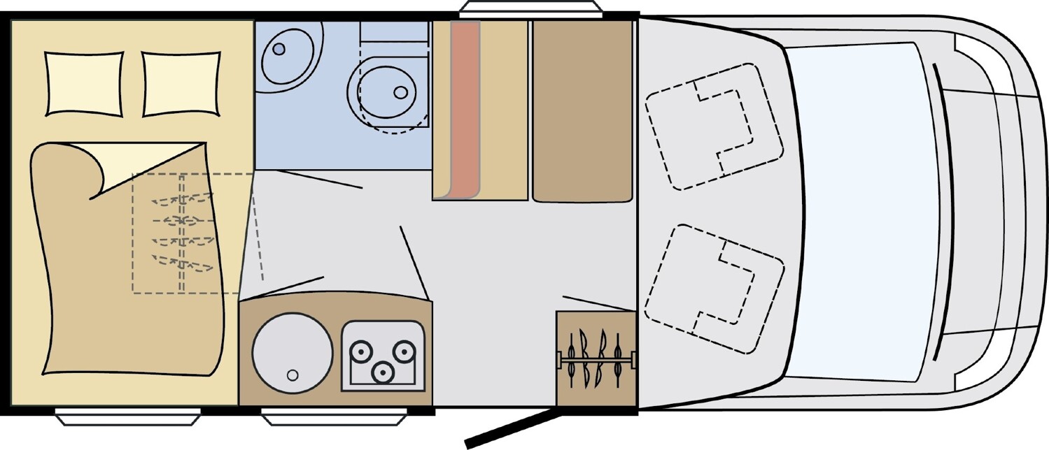 - Basic-Paket (Panorama-Dachlüfter (Midi Heki), Duschraumverkleidung, Mini Heki statt MPK Dachhaube, Holzduschrost, Garderobe, Captain Chair Sitz, Überzug für Captain Chair Sitz in Wohnweltstoff, Kleiderstange in Nasszelle, 2. Steckdose im Dachschrank über Küchenblock, LED-Innenleuchte)